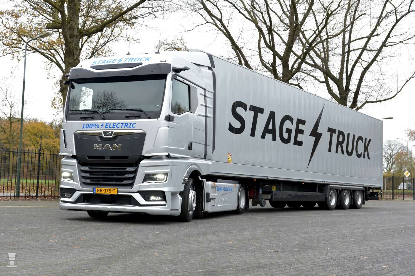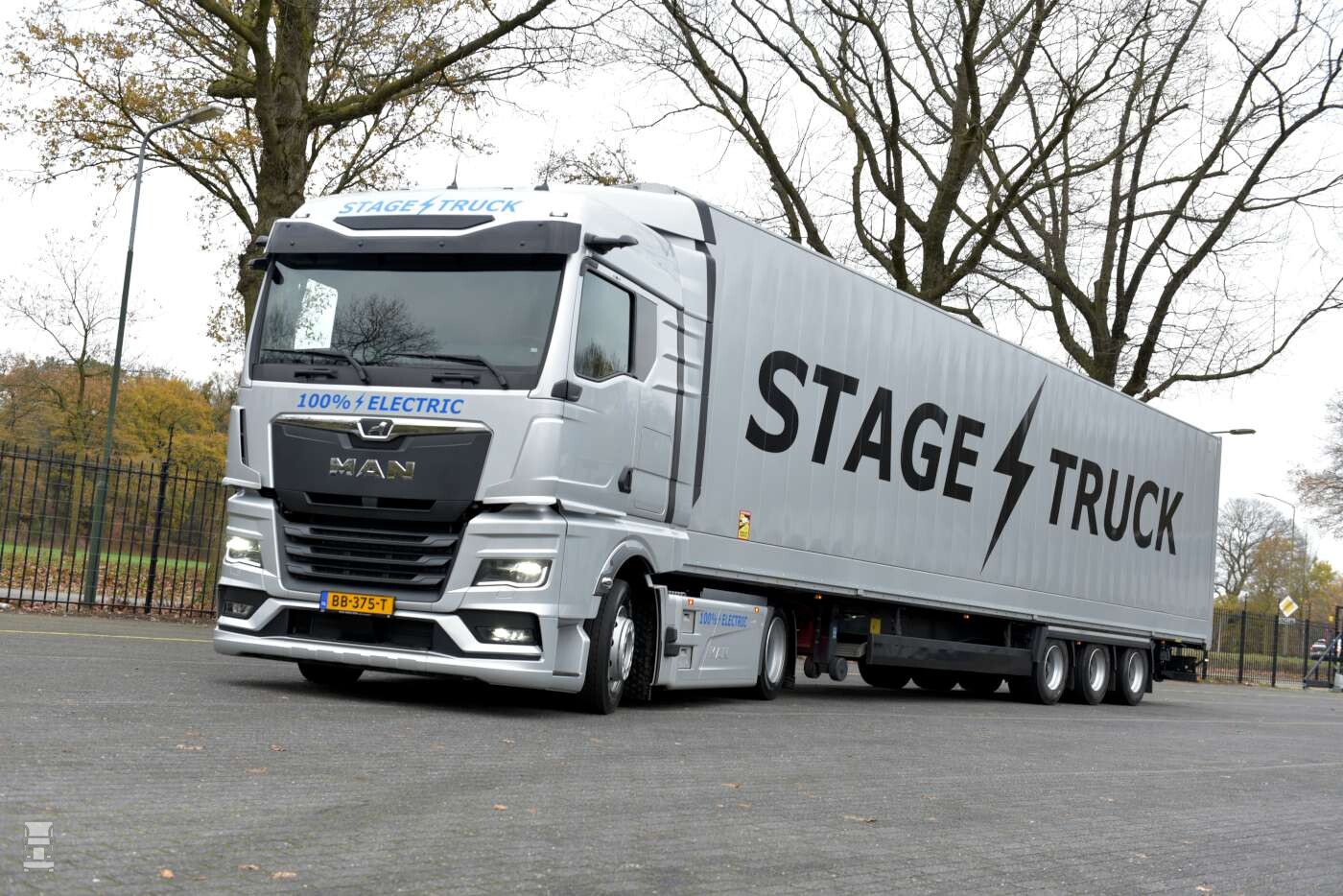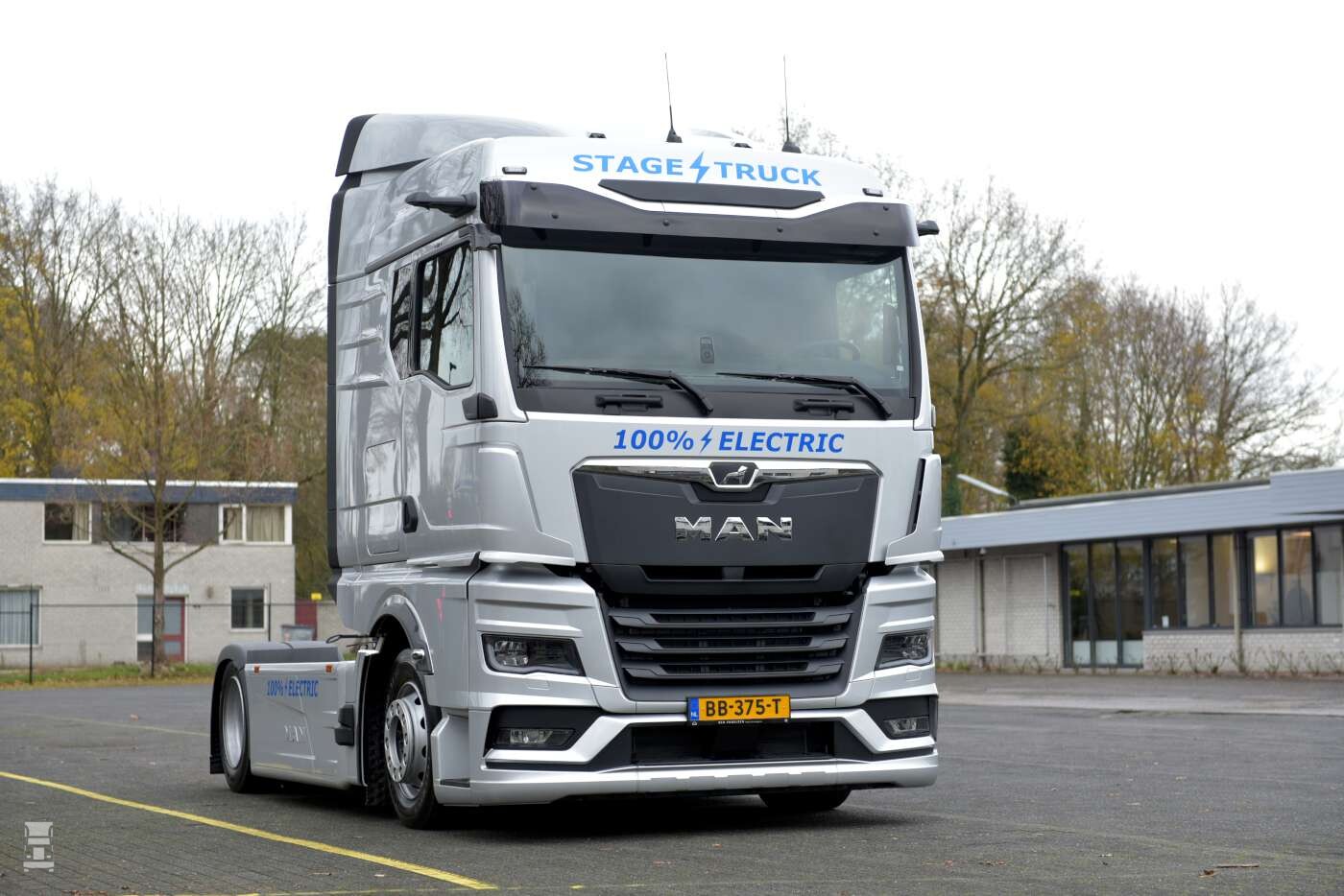 Voor Stagetruck zijn de elektrische MAN-trucks de eerste kennismaking met dit merk. Ballantyne: “Het concept spreekt ons enorm aan. MAN bouwt een compacte elektrische truck met voldoende actieradius én - heel belangrijk - in een Low Deck-uitvoering met een schotelhoogte van 95 cm. Daarin is MAN uniek, want geen enkel ander merk levert een elektrische Low Deck-trekker, laat staan met deze schotelhoogte. Verder is de MAN eTGX met zijn wielbasis van 375 cm ook de meest compacte elektrische truck op de markt.” Om de trekker optimaal in te kunnen zetten is er een hefschotel gemonteerd.