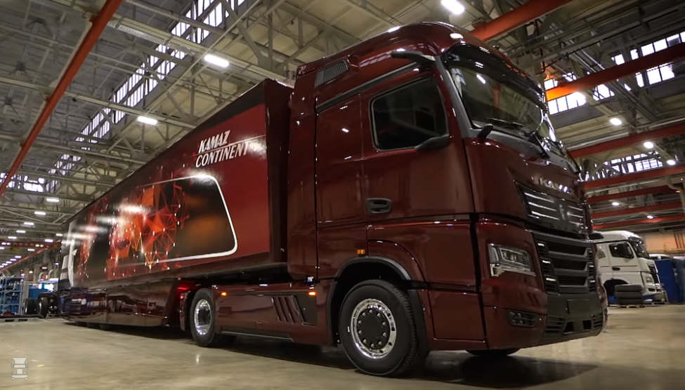 Kamaz heeft de wind er flink onder. Destijds waren het onooglijke recht-toe-recht-aan truckjes met een gedeelde voorruit en een heel dik V8 blok waar wel 220 pk uit kwam. Maar sinds de deelname van Daimler in het Russische bedrijf gaat het technisch en optisch stukken beter. De eerste testexemplaren van de 54901 zijn rond de kerstdagen bij klanten uitgezet. De cabine hiervan toont onmiskenbaar gelijkenis met de Mercedes Actros MP4. Maar inmiddels werken de Russen alweer aan een modernere variant die geen spiegels meer heeft en die een hybride aandrijving heeft, de zogeheten Kamaz 54907 Continent. Daarmee hopen de Russen een verbruik van 1 op 4 zonder problemen te halen. Het leuke is, dat de eerste truck min of meer dezelfde rode kleur heeft als de eerste spiegelloze Actros die begin september 2018 voorafgaand aan de IAA, in Berlijn werd onthuld.