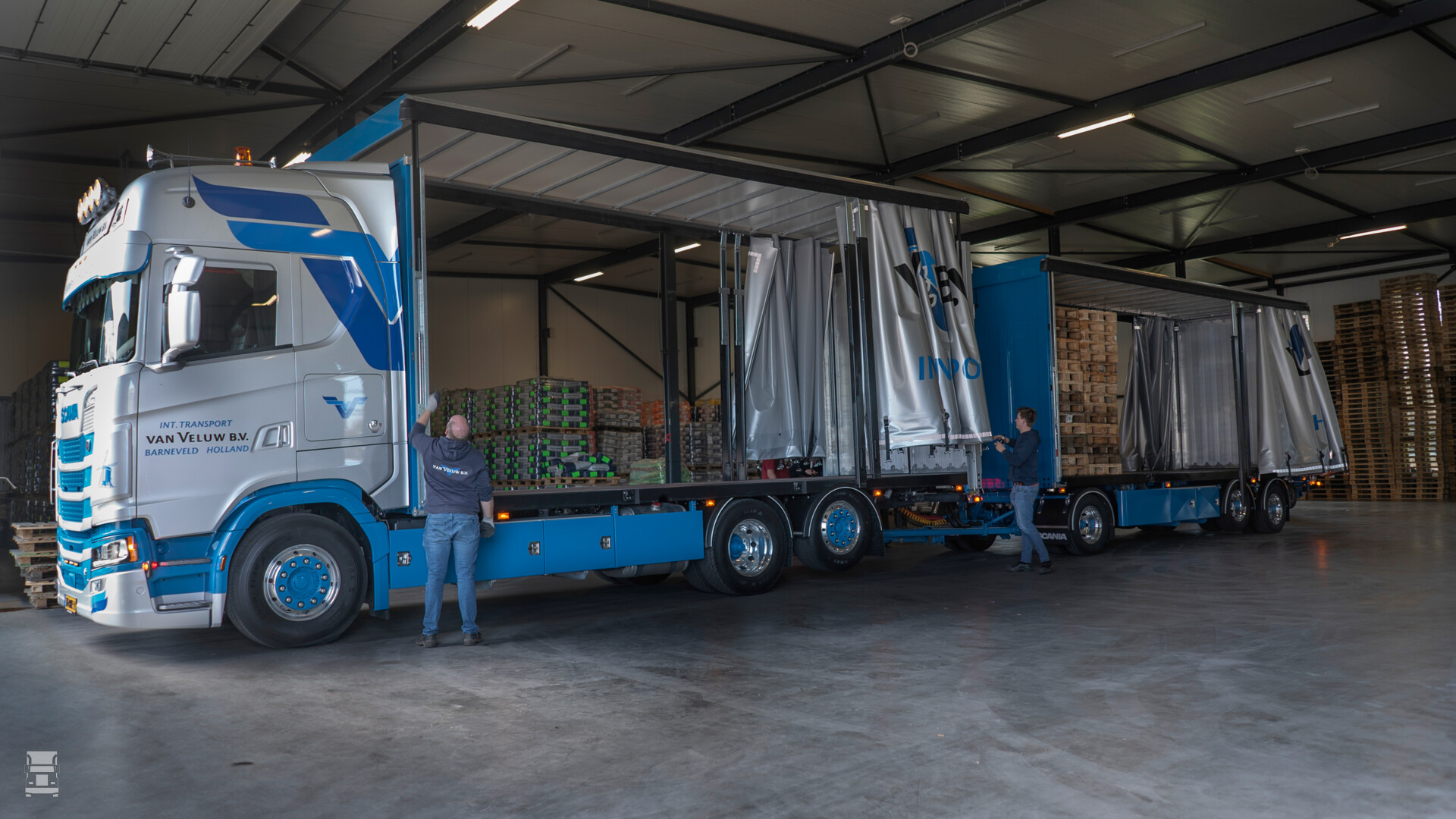 Na dertien jaar DAF is hij blij dat zijn neefs voor deze dikke Zweed hebben gekozen: “Een DAF is natuurlijk ideaal als je de hele week van huis ben, maar ik ben vaak ’s nachts thuis. Het geluid van zo’n V8 kan natuurlijk niks tegenop en vanaf het dashboard is echt alles te regelen. Het combi rijden zal nog wel even wennen zijn, maar ik ga dat vast onder de knie krijgen. In de bochten komt de aanhanger een stuk minder binnendoor; door de naloopas trekt hij hem net zo mooi om de hoek. Hier ga ik wel plezier van beleven…”