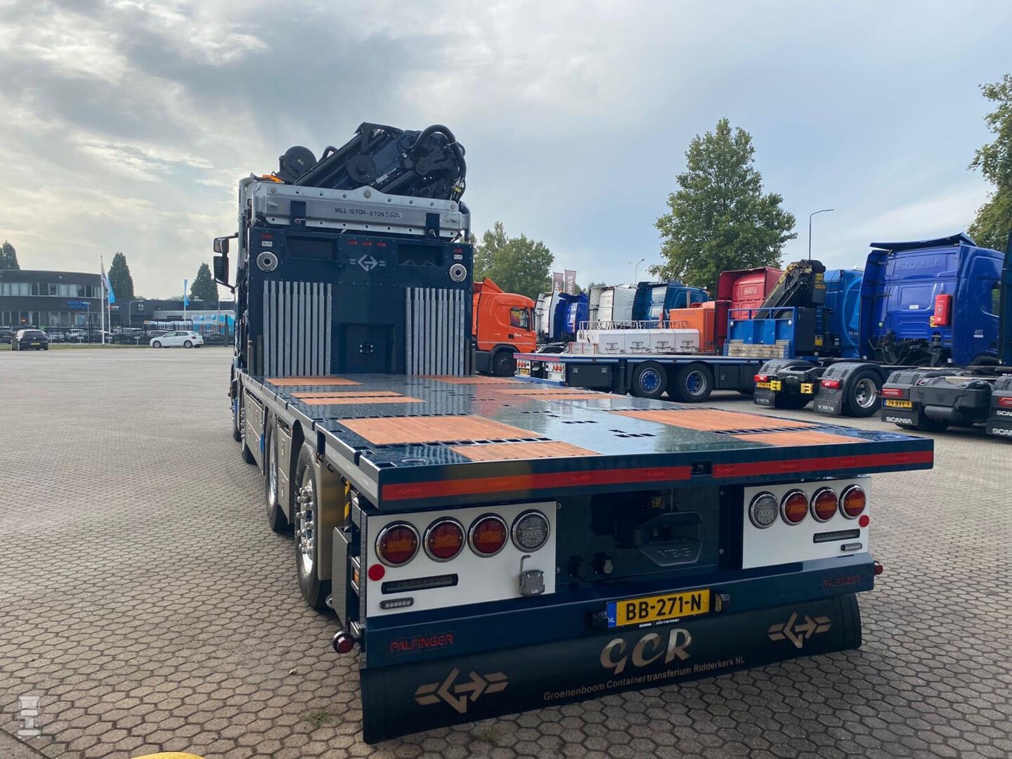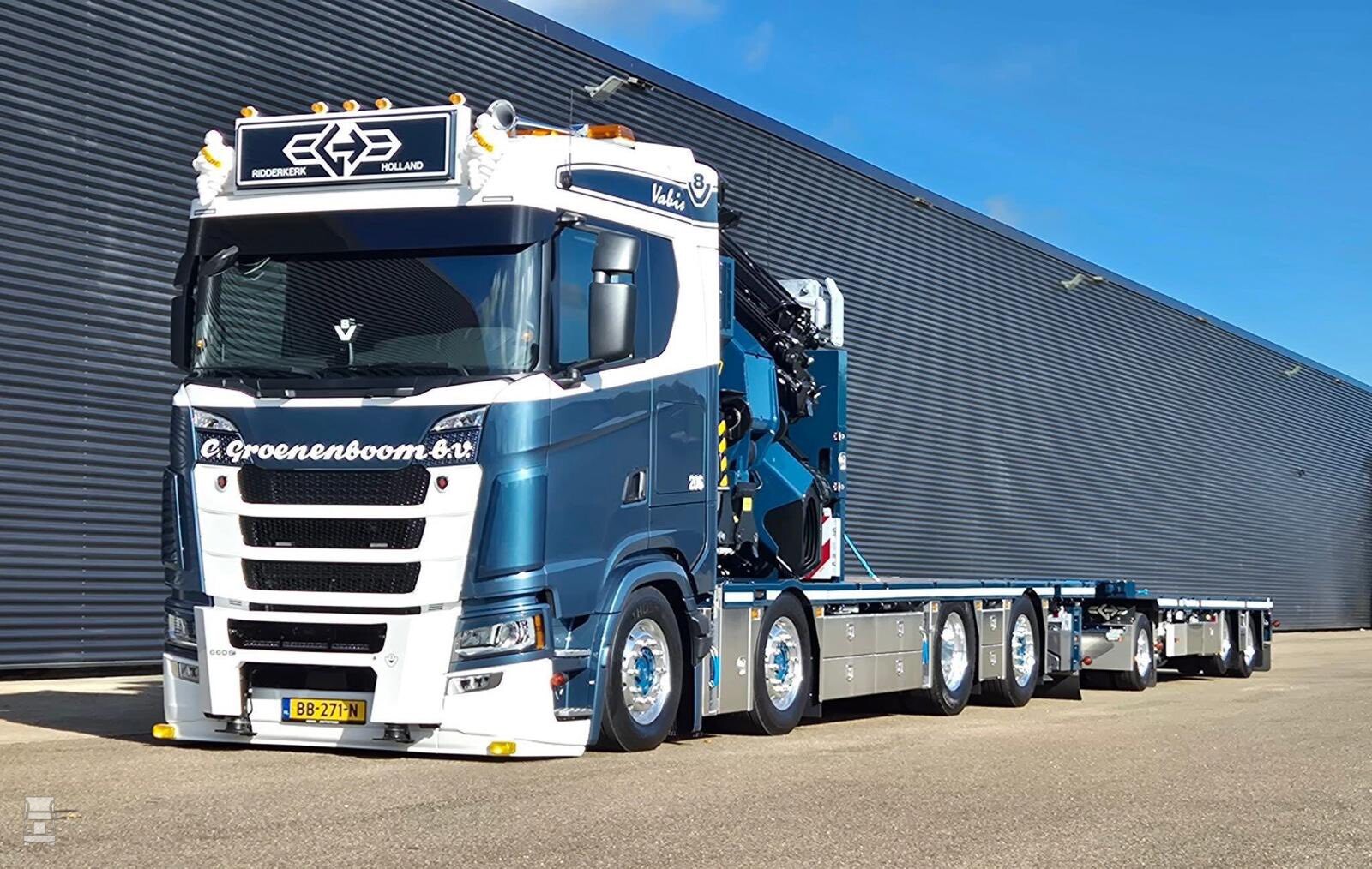 De truck werd opgebouwd met een laadbak en de Palfinger autolaadkraan door VDA in Zoeterwoude. De Scania werd afgeleverd door Scania Alblasserdam.