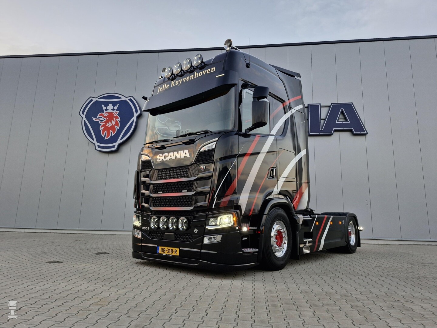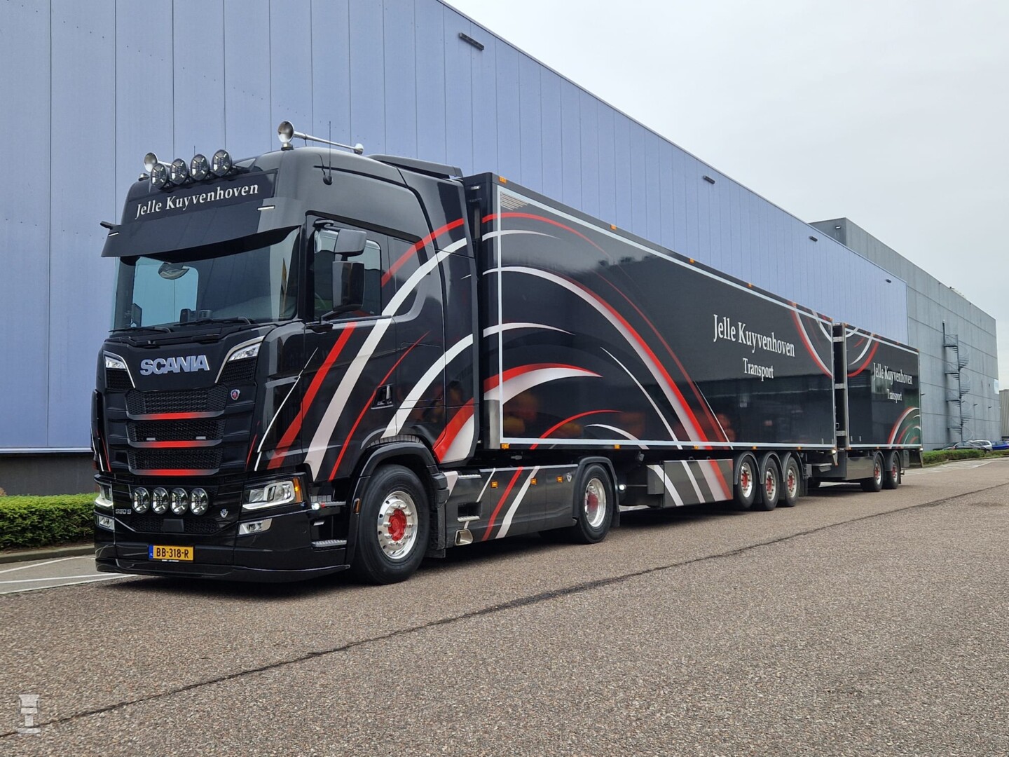 Jelle Kuyvenhoven Transport heeft zijn Actros ingeruild voor een nieuwe Scania 660S. De stoere V8 staat voor de bekende LZV combinatie, die volledig nieuw in de kleuren werd gezet door Tanco Sign & Print.