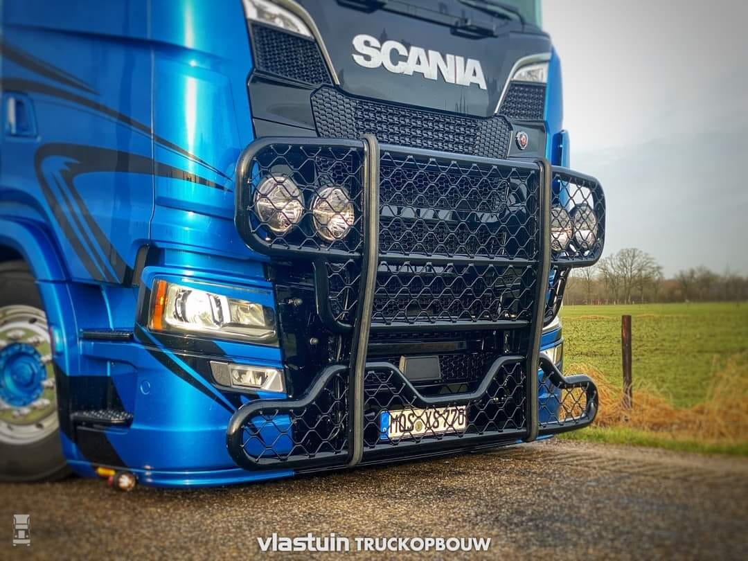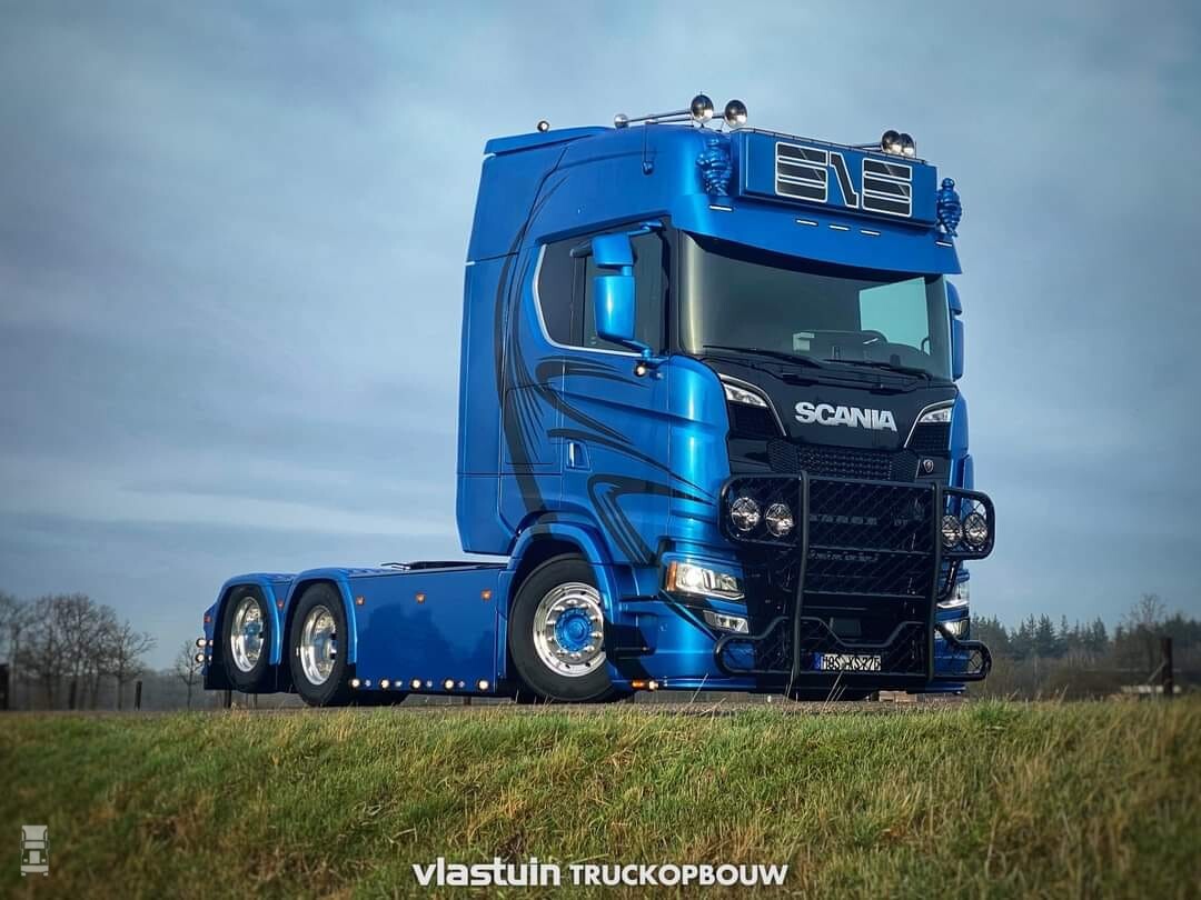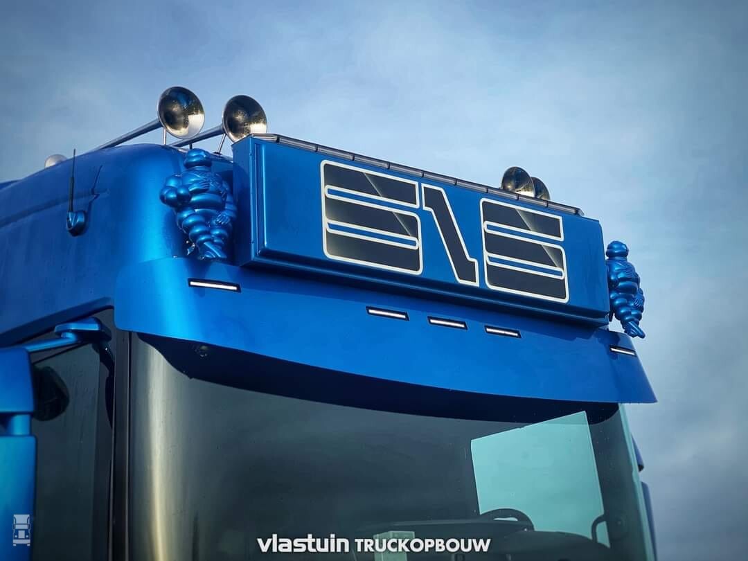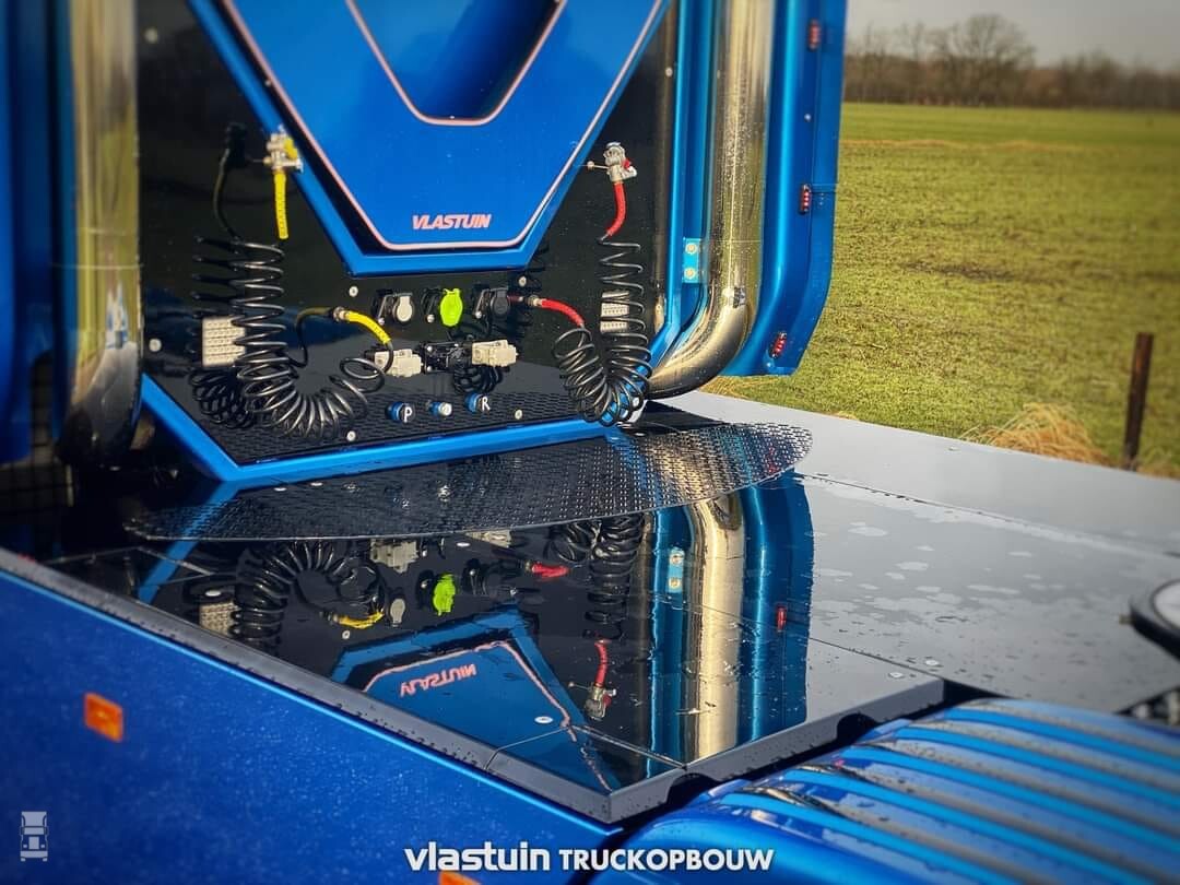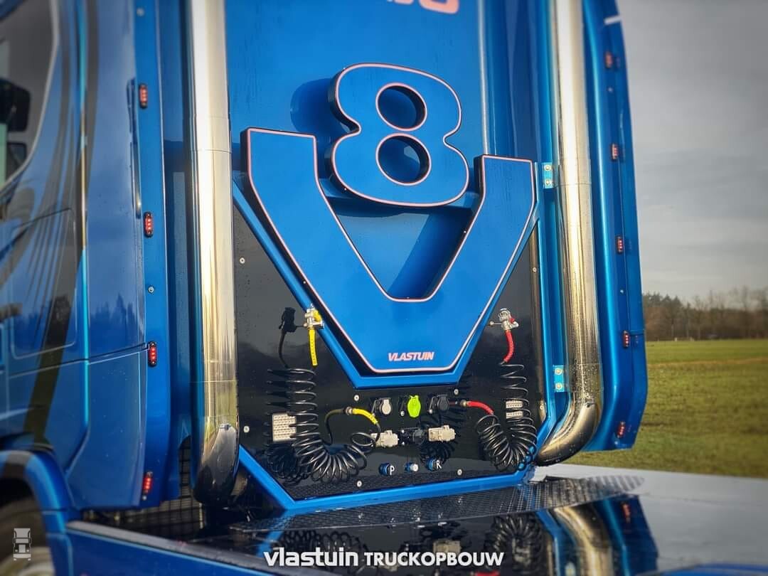 De truck werd voorzien van een gladde cabine achterwand, een indrukwekkend V8 logo achterop, staande uitlaten, zijpanelen en een taylor made achterbumper. Verder werd er een complete vlonder aangebracht en werd de truck rijkelijk voorzien van accessoires en verlichting. De kers op de taart is het fraaie spuitwerk van Van Winkoop.