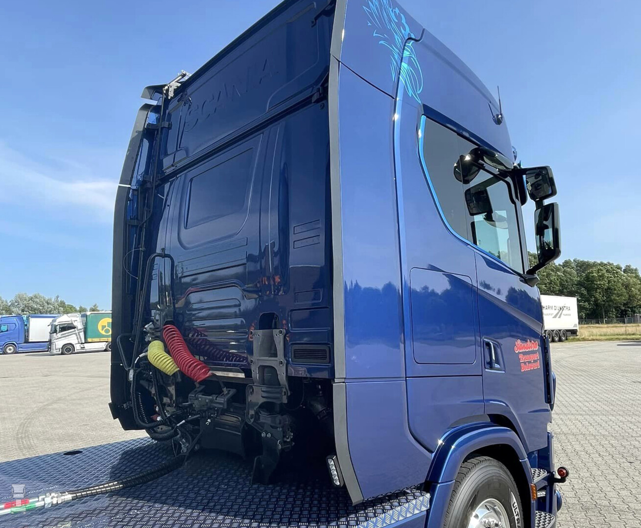 De 770 pk steker trekker werd afgeleverd met een fraaie lichtbak, een verlengde zonneklep en een stevige bullbar. Eigenaar Catrinus Sandstra heeft hiermee volgens Scania dealer Rinsma de eerste afgeleverde truck met deze cabine in Europa. BIGtruck maakte begin dit jaar al kennis met de verlengde Scania cabine tijdens Scania Winter in Noorwegen. Klik hier voor dat verhaal en het filmpje!