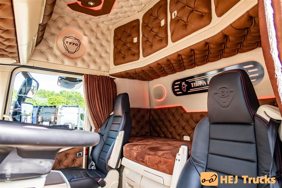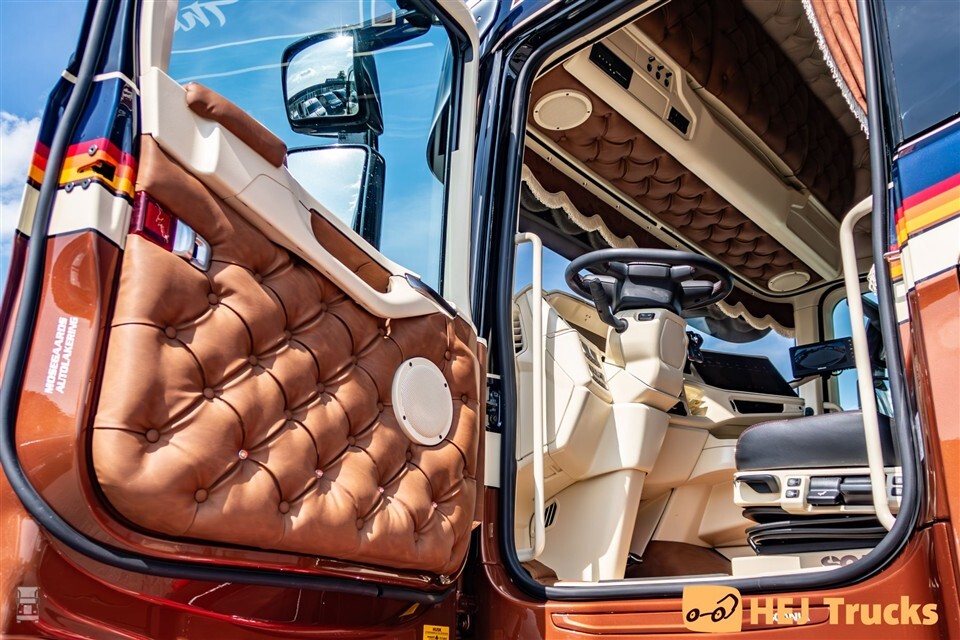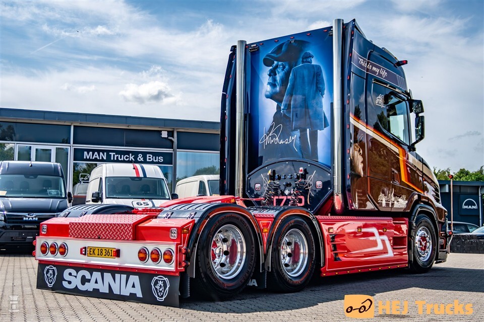Hoe dan ook staat de Scania zijn Deense kostuum erg goed. Daarbij kreeg de 770ST ook nog wat stijlvolle accessoires, zonder hierbij te overdrijven. Op de carrosserie verscheen bovendien een tekst van Deense zanger en volksheld Kim Larsen. Het thema ‘this is my life’ komt op meerdere plaatsen op de Scania terug. Achterop de cabine verscheen een grote airbrush van de in 2018 overleden zanger. Een mooi eerbetoon, we kunnen niet anders zeggen.