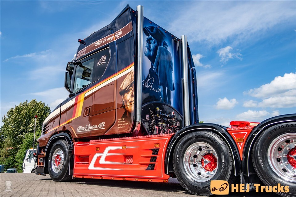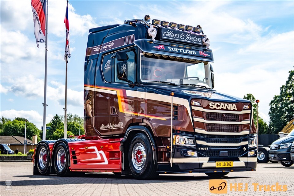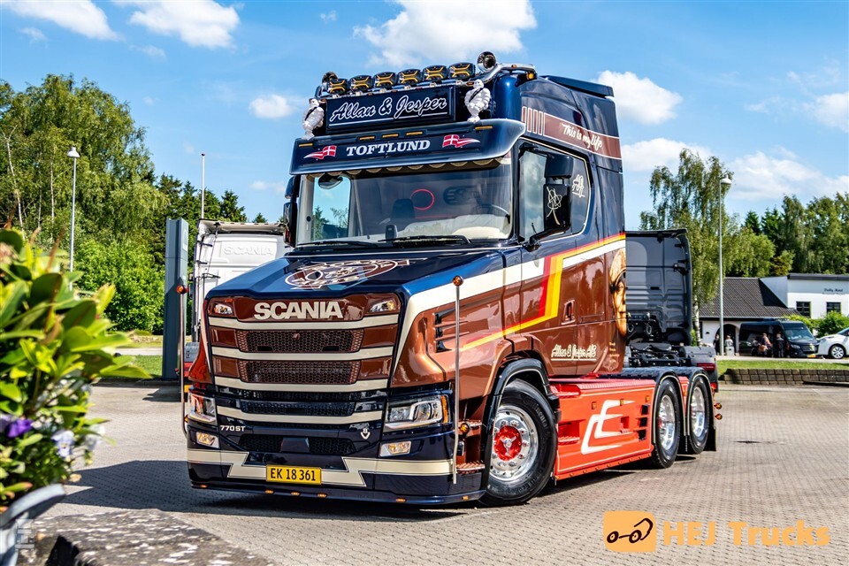 De nieuwste vrachtwagen van transportbedrijf Allan & Jesper A/S uit het Deense Toftlund is er eentje uit de boeken. De in Nederland door Vlastuin gebouwde torpedo op basis van een Scania 770S werd door het bedrijf flink onderhanden genomen. Het bouwproces duurde enkele maanden, maar het resultaat is er dan ook naar. Alle vrachtwagens van Allan & Jesper A/S zien er goed uit, maar de nieuwe Scania 770ST springt er wel uit.