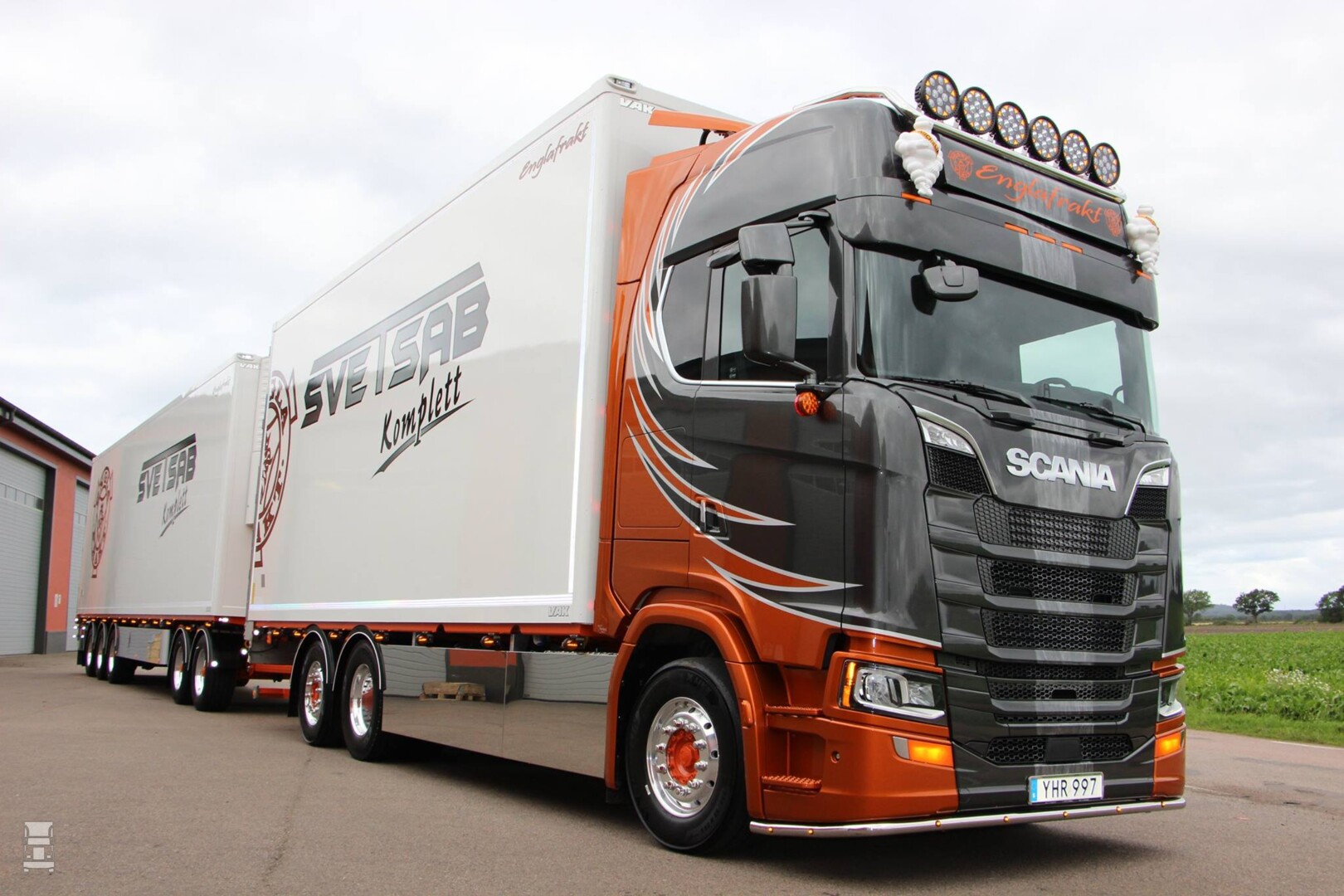 Svetsab is een Zweeds bedrijf wat zich bezig houdt met carrosseriebouw, hydrauliek- opbouw en allerlei andere truck- gerelateerde zaken. Zoals gebruikelijk in Zweden is de afwerking tot in de puntjes. De nieuwe combinatie van Engla Frakt werd voorzien van het nodige RVS. Dat lijkt ons nog een hele uitdaging in het barre Scandinavische klimaat.