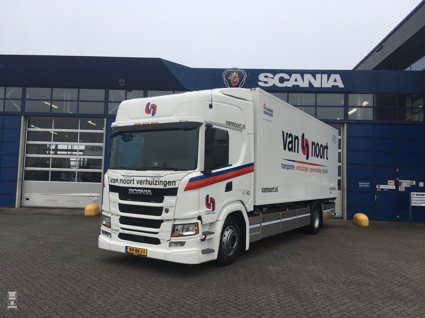 Van Noort Verhuizingen uit Waddinxveen heeft een Scania G320 Highline bakwagen in gebruik genomen. De nieuwe Scania ziet er strak uit door een aantal kleine cosmetische aanpassingen.