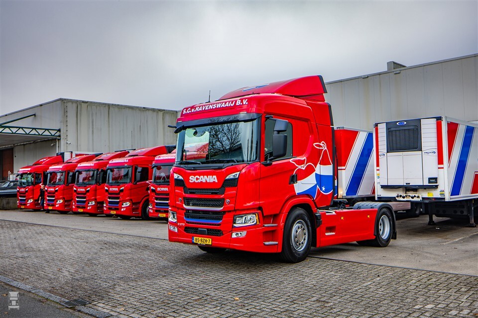 Voor de vernieuwing van de vloot zocht S.C. van Ravenswaaij uit Veenendaal naar geschikte vrachtwagens. Verschillende merken werden getest, maar Scania kwam als beste bovendrijven. De nabijheid van Scania Veenendaal bleek een pluspunt. Zodoende kwamen er acht nieuwe Scania’s: zeven keer G 370 trekker en één P280 bakwagen. Deze sluiten goed aan bij het distributiewerk van de groothandel.