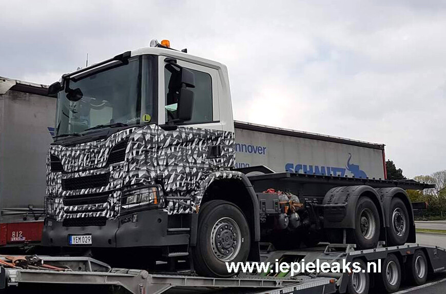 Scania komt dit jaar met nog veel meer nieuws. Het wachten is niet alleen op de nieuwe P- en G- modellen, maar ook op de construction range en de nieuwe zwaar-transport voertuigen. Gisteren werd deze 6x4 met aangedreven vooras gespot in Hasselüne, vlakbij de Nederlandse grens dus!