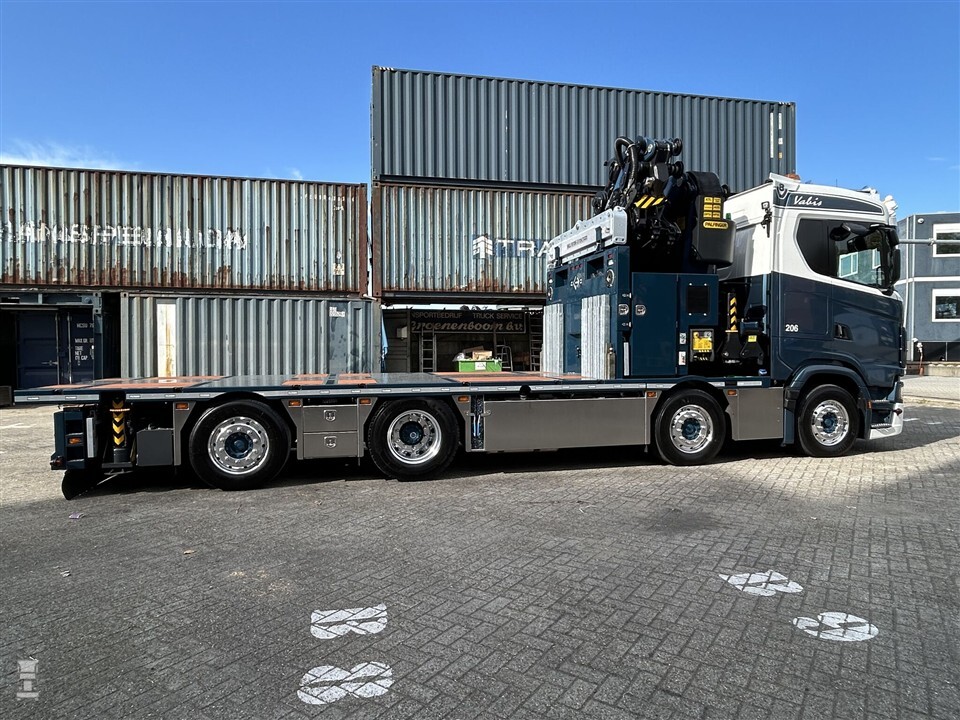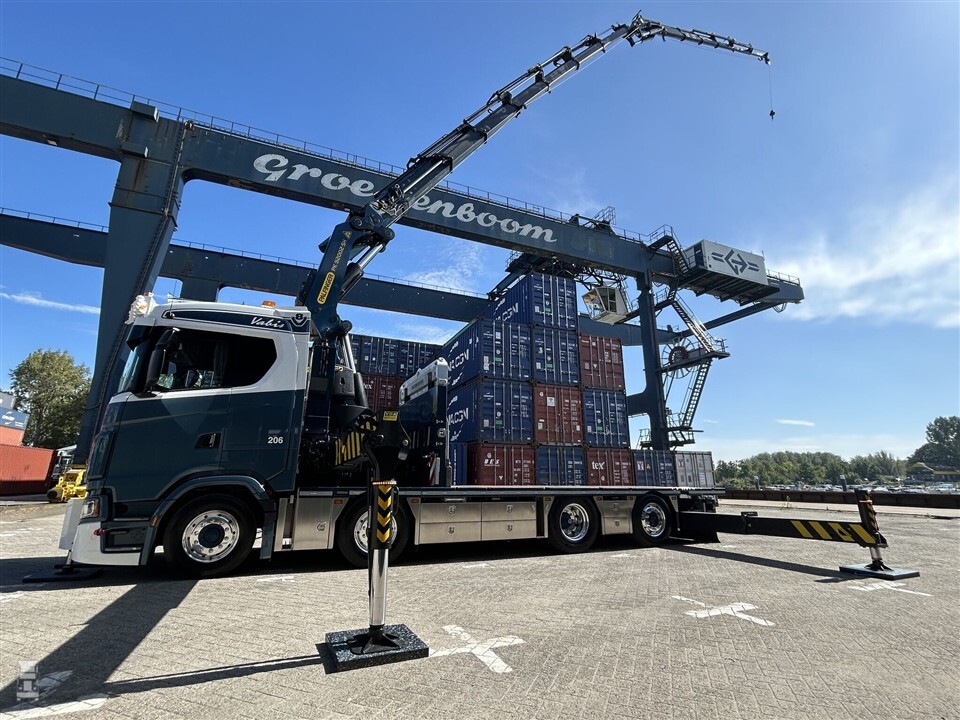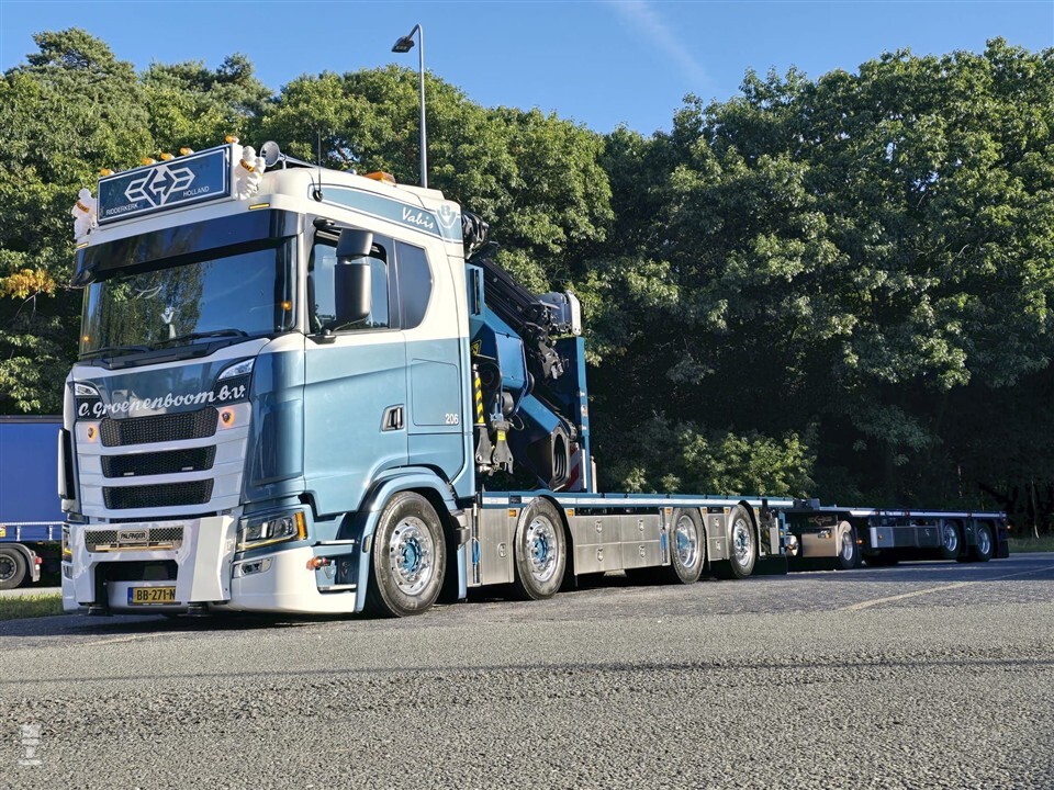 Het opbouwen van een nieuwe vrachtwagen met autolaadkraan is niet zomaar gedaan. Vaak werken verschillende bedrijven samen. Bij de nieuwe Scania van Groenenboom is dat niet anders. De basis is een Scania 660S, geleverd door Scania Alblasserdam. Met zijn V8 is dit natuurlijk een stoere basis voor een kraanauto. De laadbak is door Groenenboom zelf ontworpen en voorzien van een duurzame bamboe-vloer, die geleverd is door Trentwood.