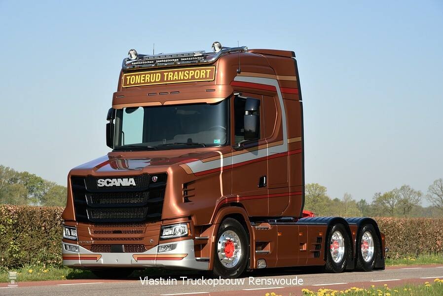 Vlastuin Truckopbouw ontwierp de nieuwe neus zelf voor de huidige generatie van Scania. Bij de af fabriek geleverde Scania S730 wordt dan vervolgens de cabine naar achteren verplaatst waarna de indrukwekkende neus er voor wordt gebouwd. De hele onderlijn van chassis en cabine blijven daarbij ongewijzigd waardoor alle technische details ongewijzigd zijn. De nieuwe Scania van Tonerud is de dertiende van dit model. Nu maar hopen dat die Noren niet bijgelovig zijn.