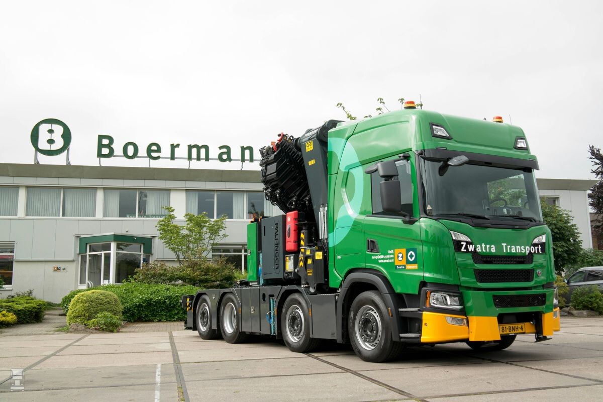 Boerman Transport is een echte autolaadkraan-specialist. Een van de twee Scania’s wordt daar ingezet. De tweede, verder identieke truck, gaat rijden in de Zwatra kleuren.