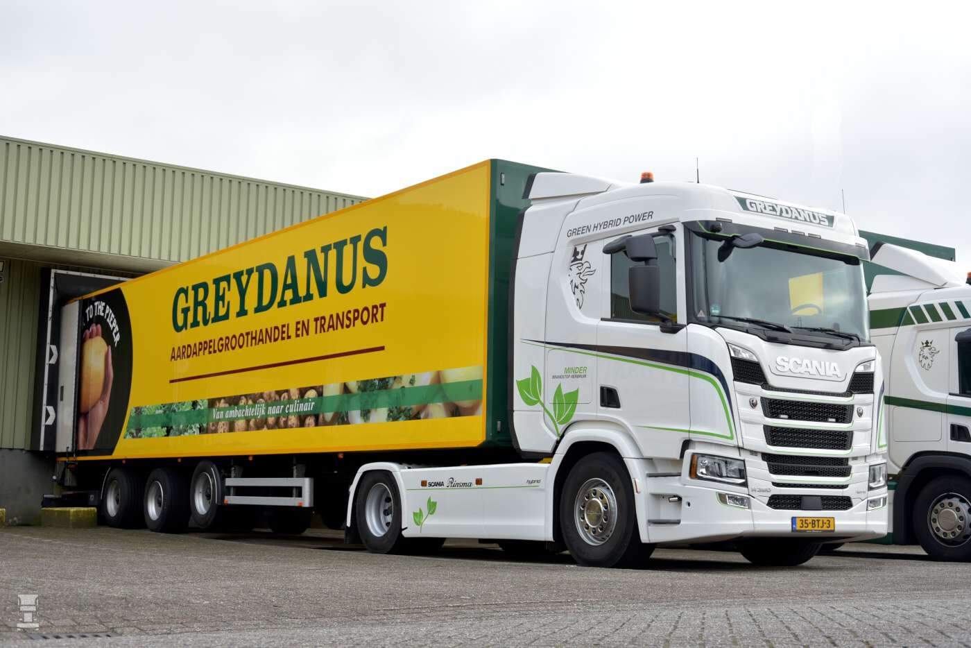 Greydanus levert dagelijks aardappelen in vele soorten aan supermarkten, zelfstandige winkels en supermarkt DC’s. ,,Voor het distributiewerk zochten we een duurzaam alternatief, maar zonder de beperkingen van een volledig elektrische truck. Met deze hybride techniek heeft Scania de voordelen van een diesel en die van een elektrische truck samengevoegd. Onbeperkt inzetbaar als diesel, en zero emissie en fluisterstil in de binnenstad. Daarbij zorgt de hybride techniek voor een lager brandstofverbruik in de distributie. Dat blijkt nu al, en de chauffeur is daar ook erg mee bezig, dus dat is mooi meegenomen’’ aldus Klaas Greydanus.
