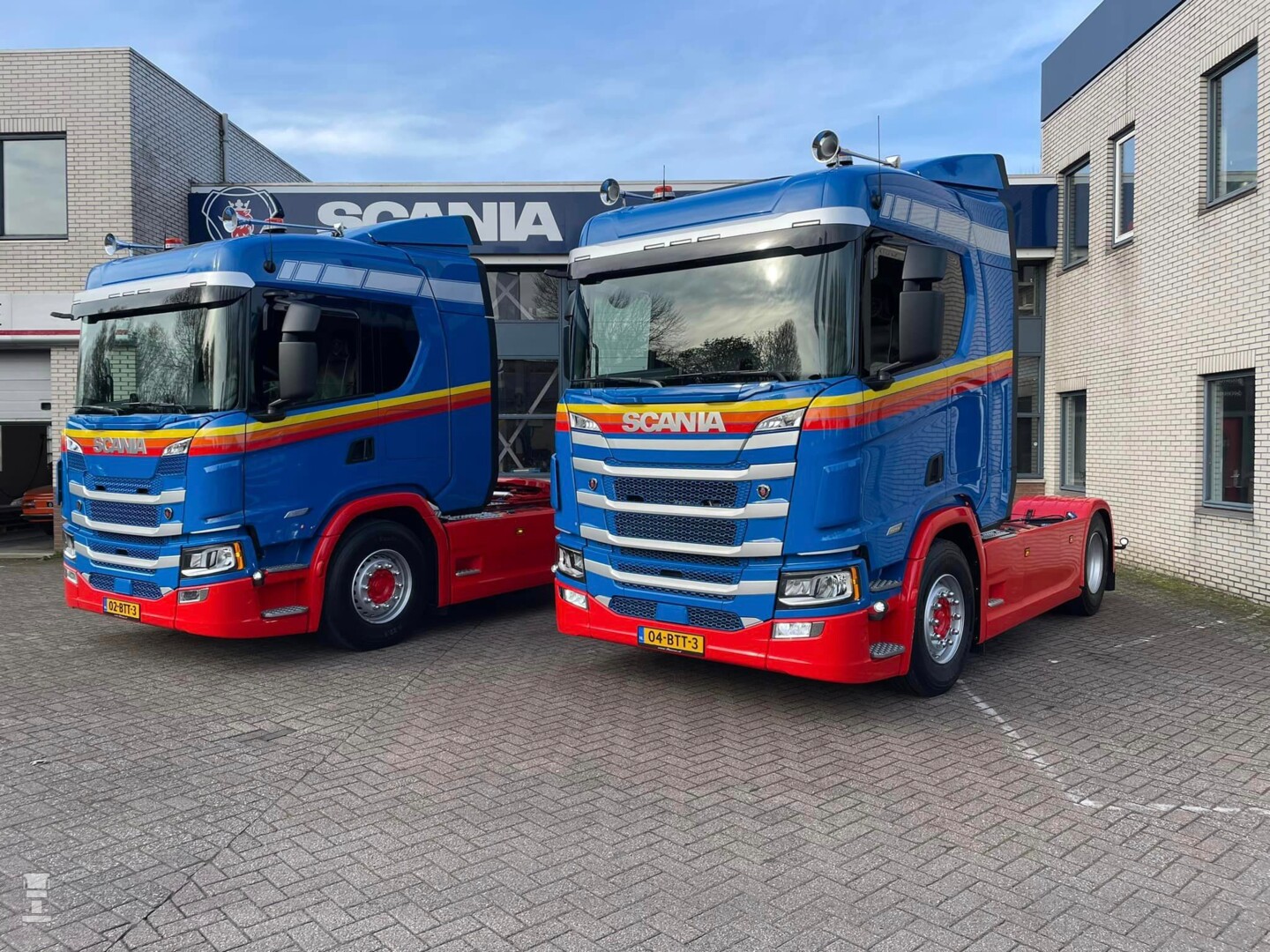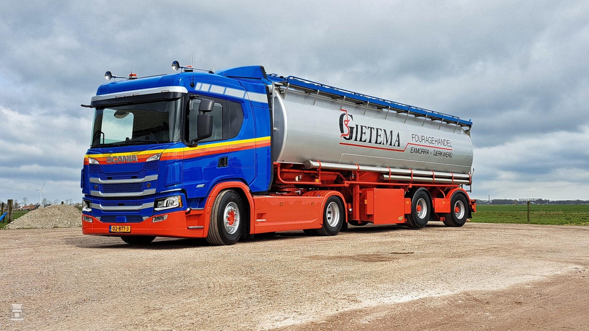 De trucks zijn uitgevoerd in de bijzonder herkenbare huisstijl van Gietema. Met de rode chassis en de blauwe cabines met striping ziet het wagenpark van dit bedrijf er soort van retro, maar altijd keurig verzorgd uit. De trucks werden afgeleverd door Scania dealer Rinsma in Berlikum. De opbouw van de blower en hydrauliek werd verzorgd door Rondaan in Berlikum, terwijl De Waterpoort in Sneek het spuitwerk verzorgde.