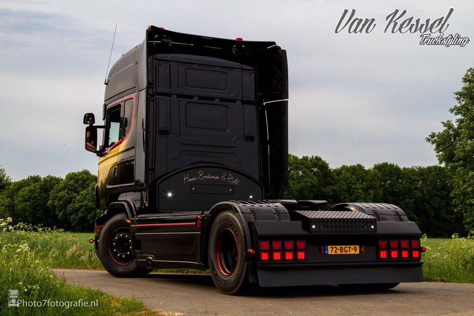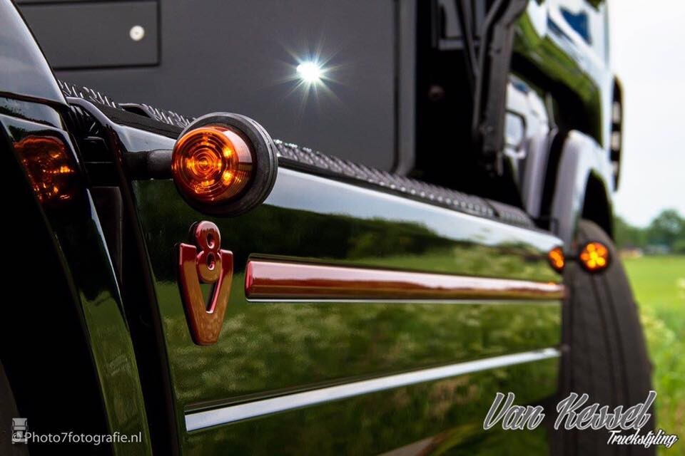 De R500 is niet nieuw, want dit type is er niet meer maar hij is wel 'zo goed als nieuw'. De trekker werd gevonden in Duitsland en met de lage kilometerstand heeft deze dikke R500 nog een heel leven voor zich. Gerrit liet de truck aanpakken door Van Kessel Truckstyling en het resultaat mag er wezen. Opvallend is dat hij dichtbij de originele 'Brolsma Style' gebleven is zoals we die kennen van de Volvo van Hans. Toch heeft Gerrit zijn eigen draai aan de truck weten te geven. Mooie spullen Gerrit! En nu aan de bak met die auto! Foto's: Photo7fotografie.nl