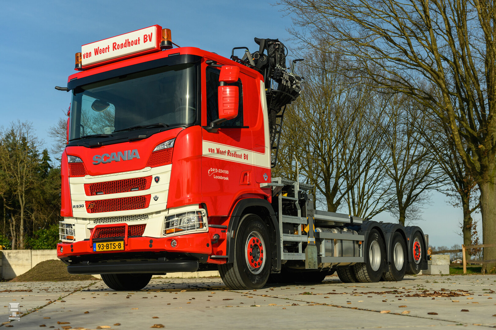 Om tot een zo optimaal mogelijke configuratie te komen, ging Van Weert niet alleen met Scania’s account manager Mark Schummelketel om tafel. Ook de chauffeur werd intensief bij de aankoop betrokken. “Samen hebben we de puzzel gemaakt. Zo hebben we besloten naast de gewone PTO een extra motor-PTO te laten installeren, zodat de haakarm bediend kan worden terwijl de auto rijdt. Dat maakt ons werk veel gemakkelijker.”