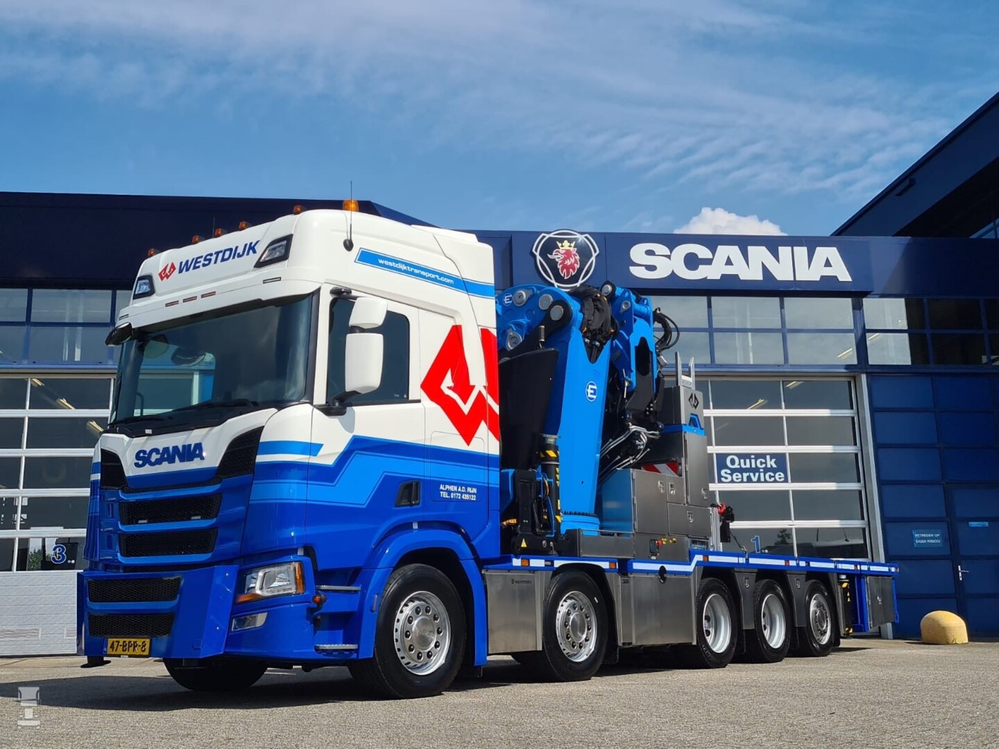 De Westdijk Group heeft na de overname van Balvert ook een blauwe afdeling, namelijk die van de specialisten met zware autolaadkranen. Het wagenpark van de 'blauwe' afdeling van Westdijk werd onlangs uitgebreid met een bijzonder fraaie nieuwe Scania R540 10x4 met een indrukwekkende Effer autolaadkraan.