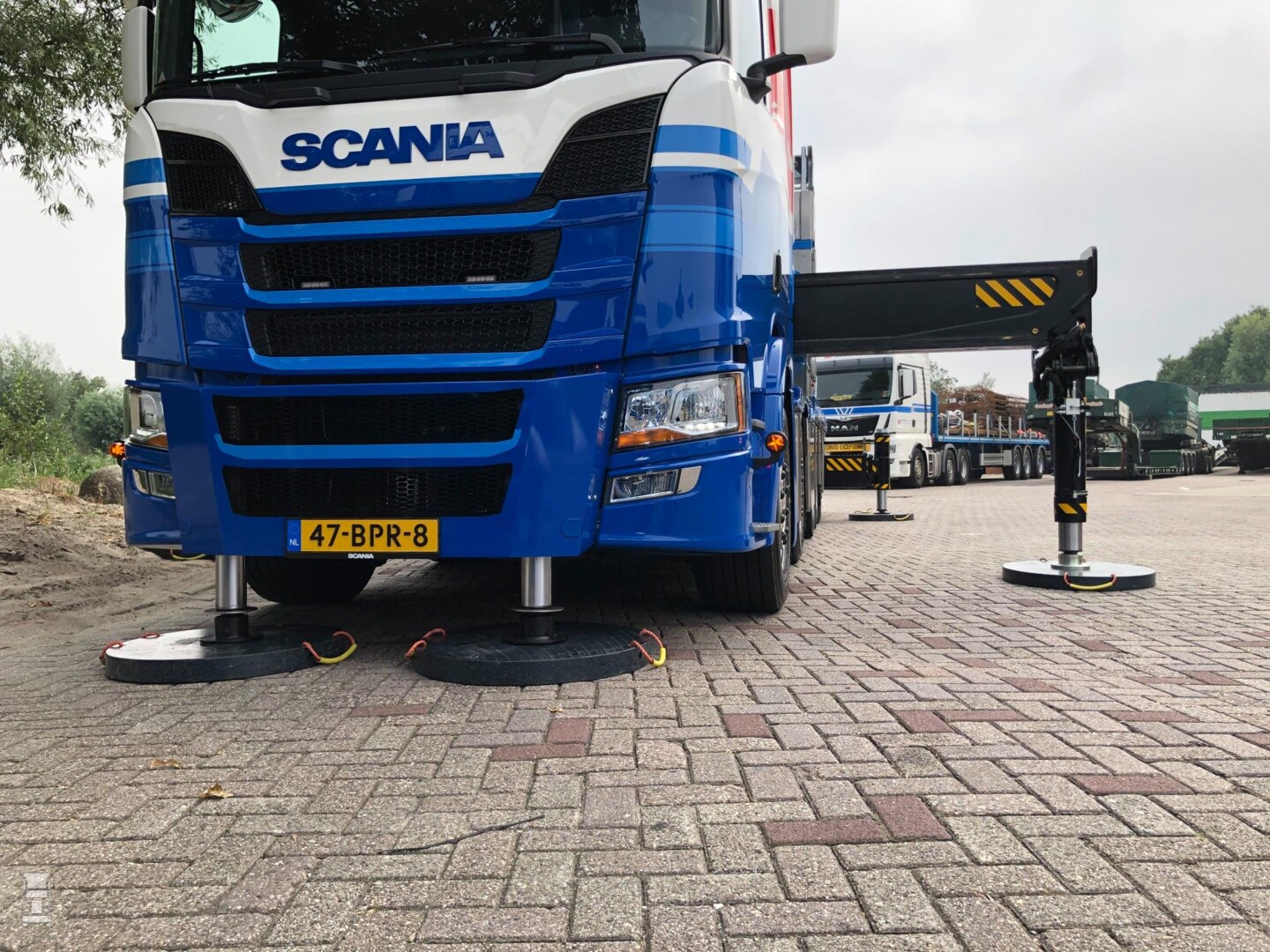 De rondom luchtgeveerde Scania is voorzien van twee tien tons voorassen, twee aangedreven assen en een gestuurde naloopas. De opbouw werd verzorgd door Kluytmans Service BV, en daar werd ook de 205 Ton/meter zware Effer autolaadkraan opgebouwd. Deze gigant heeft met allerlei hulpstukken een bereik van maar liefst 42 meter! De Effer is momenteel de zwaarste opvouwbare autolaadkraan die je kunt bestellen in Europa.