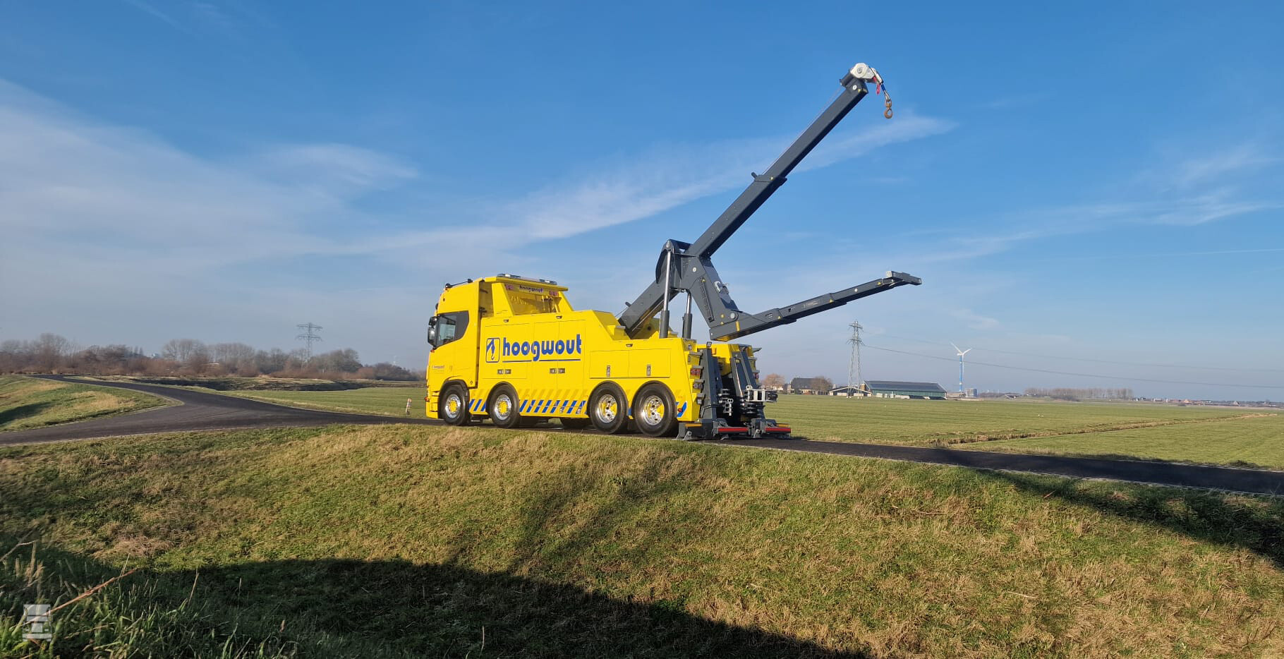 De bergingsopbouw op de nieuwe Scania R770 komt van De Groot Techniek uit Brakel en is van het type DGT 26000. De truck beschikt over een lepelinstallatie met een hefvermogen tot 11,5 ton en een uitschuifbare hijsbalk met twee lieren van elk 20 ton enkellijns. Daarnaast is het voertuig horizontaal stempelbaar aan de achterzijde. “Daarmee voldoen wij ruimschoots aan de eisen die de overheid stelt aan een CMV-berger,” licht Pels toe. De opbouw is identiek aan die van onze eerder ingezette Scania 730, een configuratie waar Hoogwout Berging al jaren zeer tevreden over is.