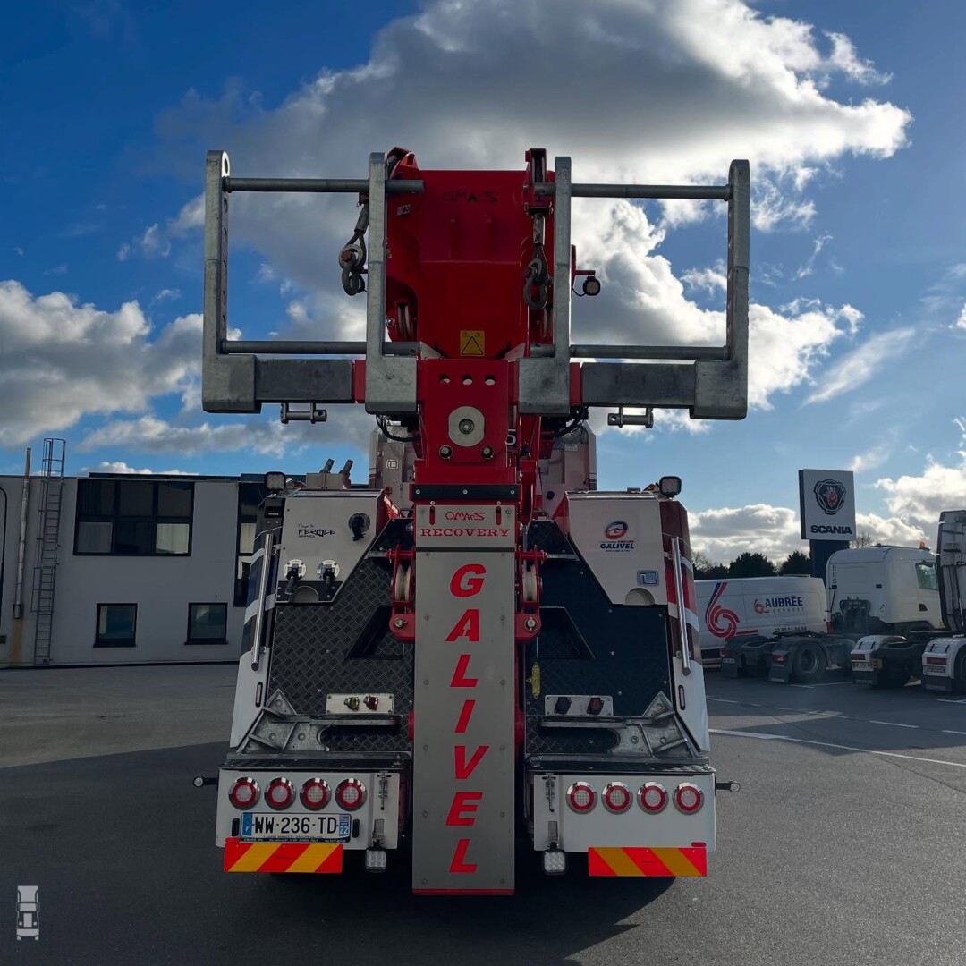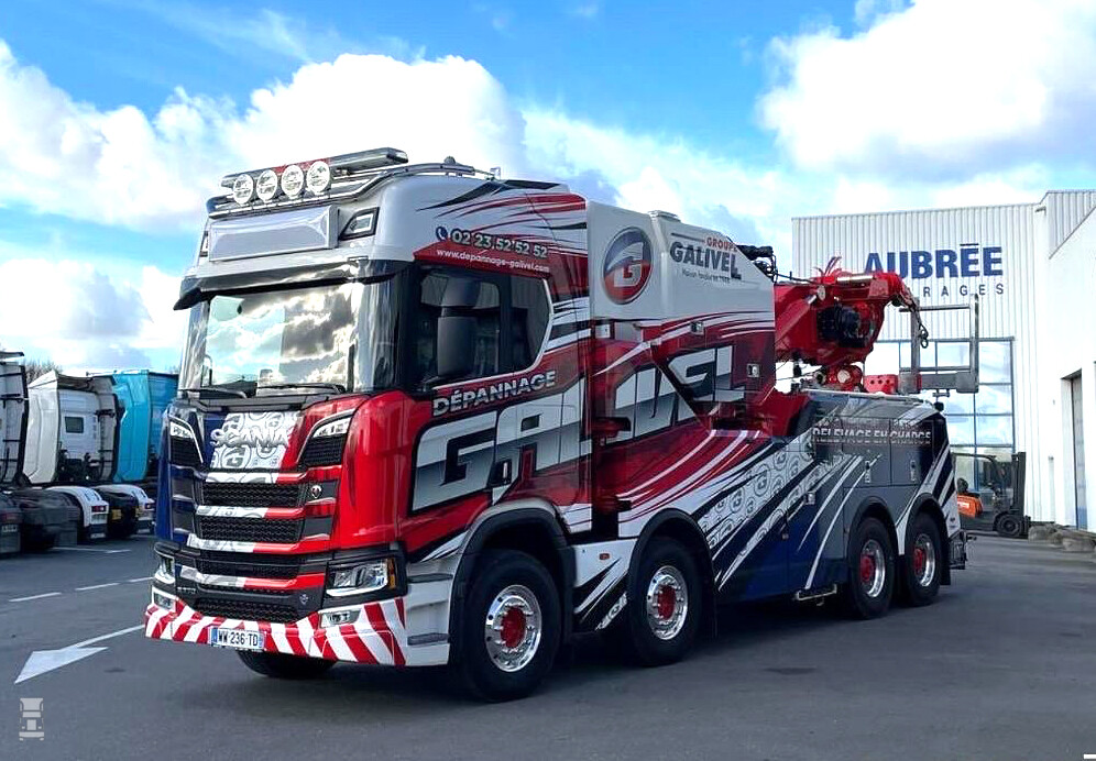Bergingstrucks zijn overwegend geel, en dat komt doordat van overheidswege deze kleur wordt geëist als ze langs de weg actief zijn. Daar is wat voor te zeggen, maar het Franse Galivel bewijst dat zo'n zware takeldoos met andere kleuren er wel heel stoer uit kan zien. Het bedrijf heeft meerdere spectaculaire bergingsauto's en voegt nu een R770 toe. De Scania is uitgerust met de 16,4 liter V8 motor met 770 pk, wat genoeg zou moeten zijn voor de zwaarste bergingsklussen. Het chassis is verstevigd en de tweede as is naar achteren verplaatst. De opbouw met een zware kraan- én een lepelinstallatie van Omars Recovery maken het plaatje compleet.