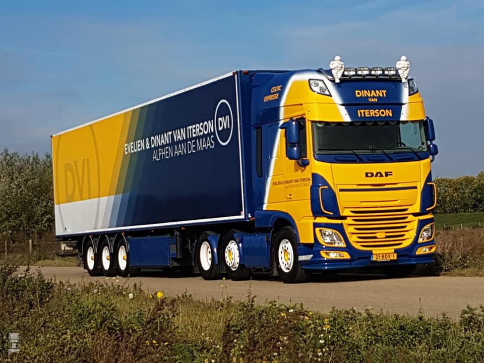 Met zijn witte wielen, de stoere bullbar en de grote lichtbak met Michelin poppen is dit weer een echte blikvanger zoals we dat gewend zijn van Van Iterson. Twee enorme pijpen achter de cabine maken het plaatje helemaal af. De foto's werden gemaakt door Ep van Kooij die toestemming gaf aan BIGtruck voor publicatie. Naast de nieuwe Scania kon Ep het niet laten om ook de DAF XF Super Space Cab op de lichtgevoelige plaat te zetten. Mooi werk Ep!