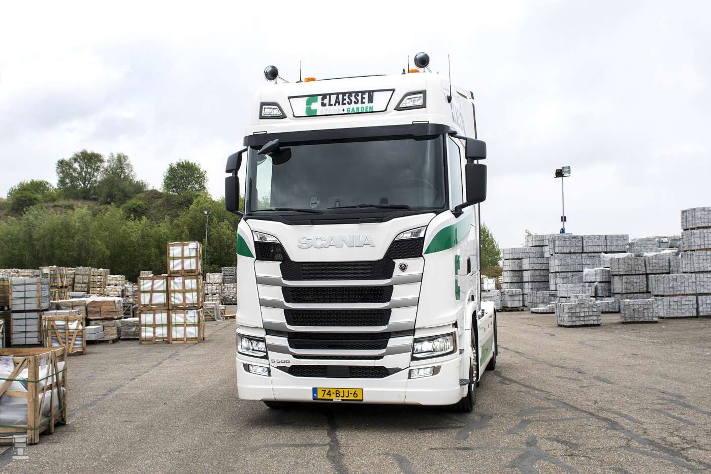 Claessen Stone and Garden uit het Limburgse Nuth heeft met een Scania S500 met midliftas een primeur. Het is namelijk de eerste Scania van het nieuwe model met zo'n 17,5 inch voorloopas.