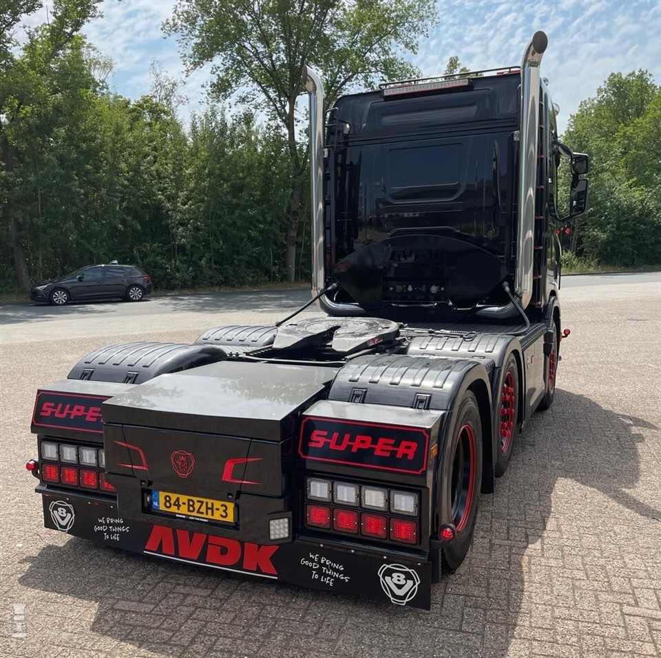 Sowieso houden ze bij AVDK Verhuur van zwarte Scania’s. Bij het bedrijf rijden meerdere exemplaren. Ze worden ingezet voor het vervoeren van machines in de landbouw en bouw, maar zijn ook wel aan een mesttrailer gekoppeld. Het nieuwste exemplaar in de vloot rijdt ondertussen alweer rond, maar we wilden hem je niet onthouden.