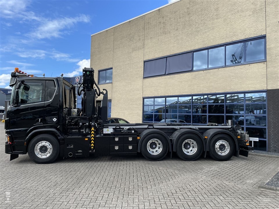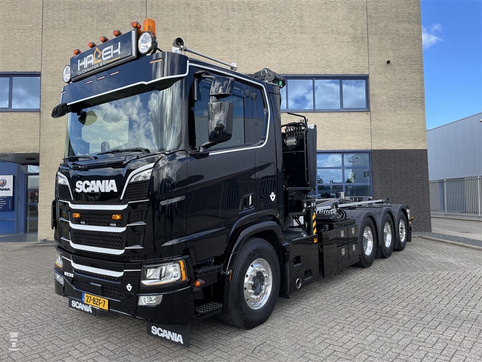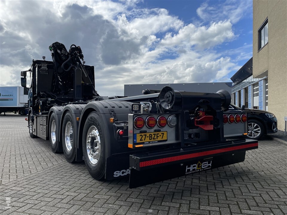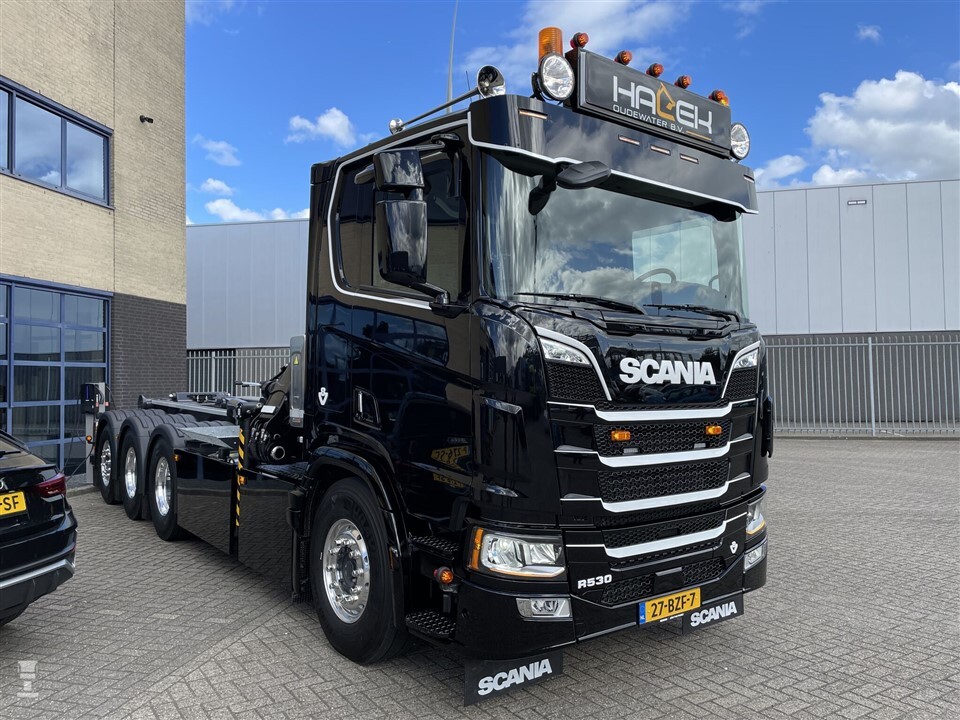 De Scania R530 V8 8x4 is voorzien van een 33tons tridem stel achter met een 10-tons gestuurde en liftbare naloopas. Dankzij de G33CM versnellingsbak met kruip- en overdriveversnelling en het elektrohydraulische stuursysteem kan deze containerauto overal komen. De Scania is voorzien van een verlengde dagcabine. En laten we niet de grote Palfinger achter de cabine vergeten. Daarbij is de Scania voorzien van een 30-tons haakarmsysteem van VDL.