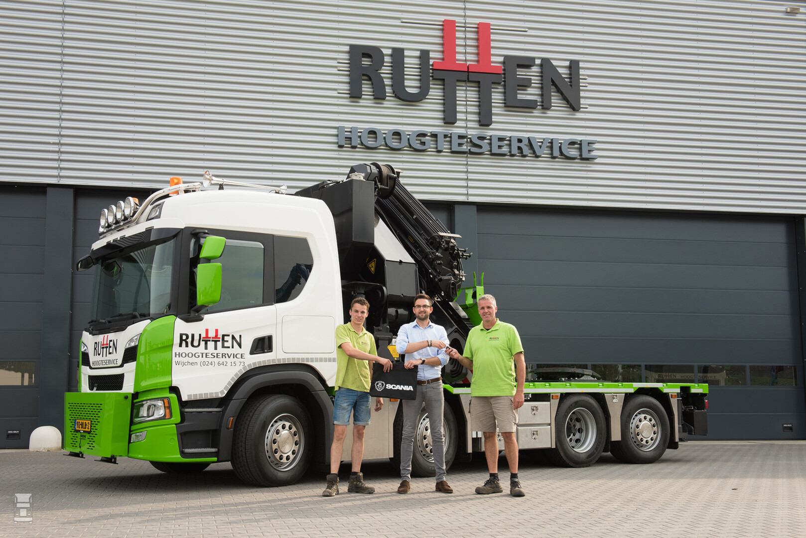 “Het is ons eerste voertuig met een autolaadkraan. Ik zie het als de kroon op ons werk want het moet wel iets héél bijzonders zijn, willen wij nu nog ergens van op tilt slaan”, vertelt Ton Rutten.” Zijn bedrijf verhuurt hoogwerkers, verreikers en hijskranen in alle soorten en maten. De Scania moet met zijn zesvoudig afstempelbare Palfinger 92 ton/meter kraan het hijsgamma van het bedrijf voor 100 procent dekkend maken.