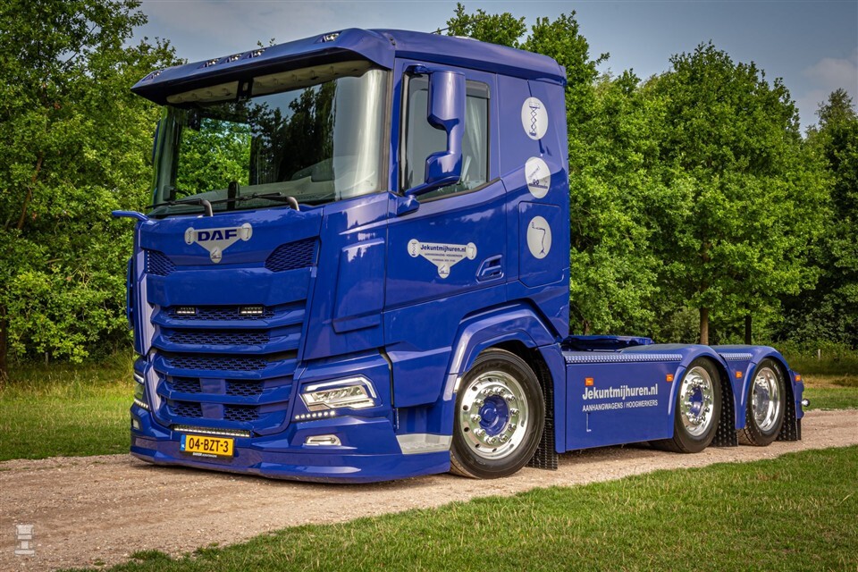 De DAF XF 6x2 is dan wel een stuk kleiner dan een XG+, voor jekuntmijhuren.nl is het een stapje groter. Het bedrijf vervoerde zijn machines voornamelijk met een DAF LF en een CF. Deze mochten echter de zero-emissiezones niet langer in. Bovendien lag er de wens bij het team om een grotere trekker aan te schaffen. Het resultaat is deze XF, die met een twee-assige citytrailer op pad gaat om hoogwerkers te vervoeren.
