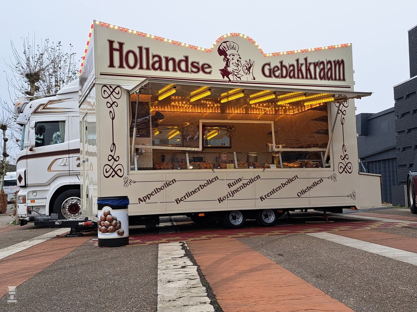 De laatste dag van het jaar, tijd voor oliebollen! Tijdens het Mega Trucks Festival stond hij al voor de deur, de Scania R380 van Sharona's Oliebollenkraam uit Leeuwarden. De Scania is een ex lesauto van Oosterpoort uit Groningen en de kans is dan ook groot dat veel chauffeurs hiermee hebben gereden.