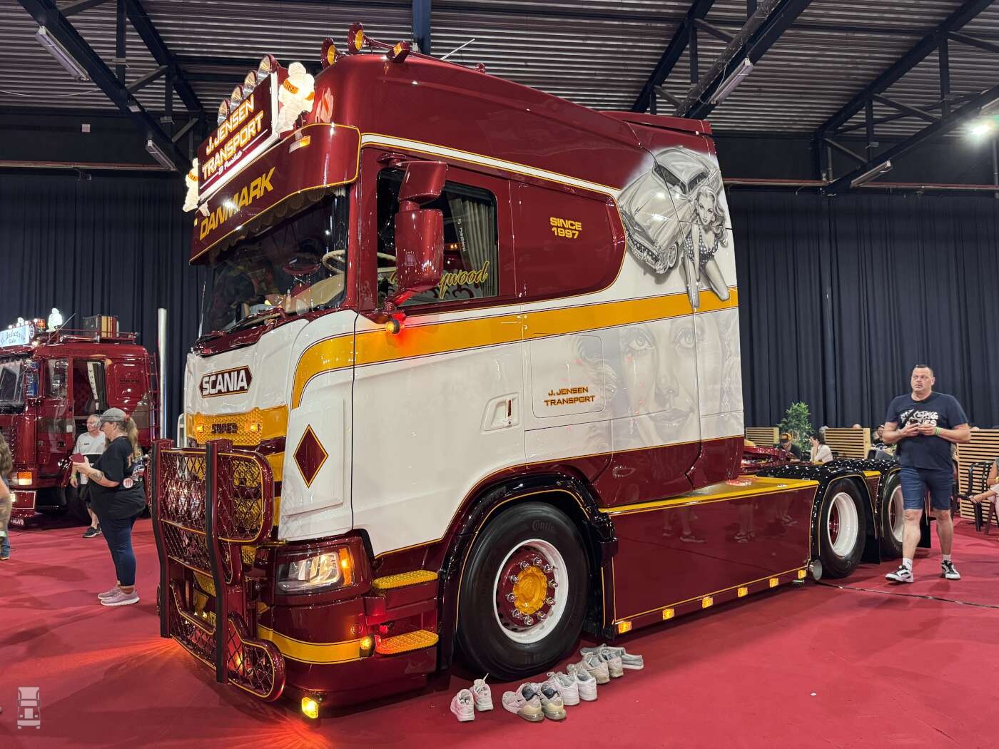 De circa 300 deelnemers komen uit heel Europa, van Griekenland tot Noorwegen. En ze brengen hun mooiste trucks mee, zoveel is wel duidelijk als je in de hal van de Expo Ciney rondloopt. Hier staan de meest waanzinnige exemplaren op felrood tapijt. Dat alleen al geeft deze show een unieke sfeer. Maar ook buiten zijn geweldig opgebouwde vrachtwagens te zien die allemaal tegen je aan glimmen.