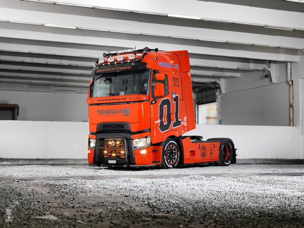 De Zwitserse Renault-dealer Thomann komt met een opvallende versie van de Renault T, in de uitvoering van de General Lee, de auto die sommigen van ons kennen uit de vroegere TV-serie The Dukes of Hazzard. Speciaal voor truckshows heeft deze Renault een ingebouwde barbeque!