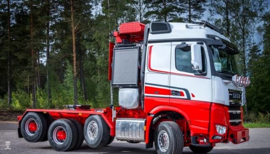 De trekker is goed voor 72 ton en voor combinatiegewichten tot 300 ton. Bijzonder, en typisch Sisu is dat de achterste, aangedreven as ontkoppeld en gelift kan worden. Dat scheelt banden en brandstof. Verder zijn de aslasten op alle assen aan te passen en afleesbaar en heeft deze Sisu extra koeling voor zowel de koppeling als de motor. Overigens is de Sisu leverbaar met zowel 18-speed Eaton Fuller versnellingsbak. Deze heeft 18 plus 4 versnellingen met extra lage kruipversnellingen en een dubbele koppeling. De motor is de OM473 met 625 pk en een koppel van 3000 Nm.
