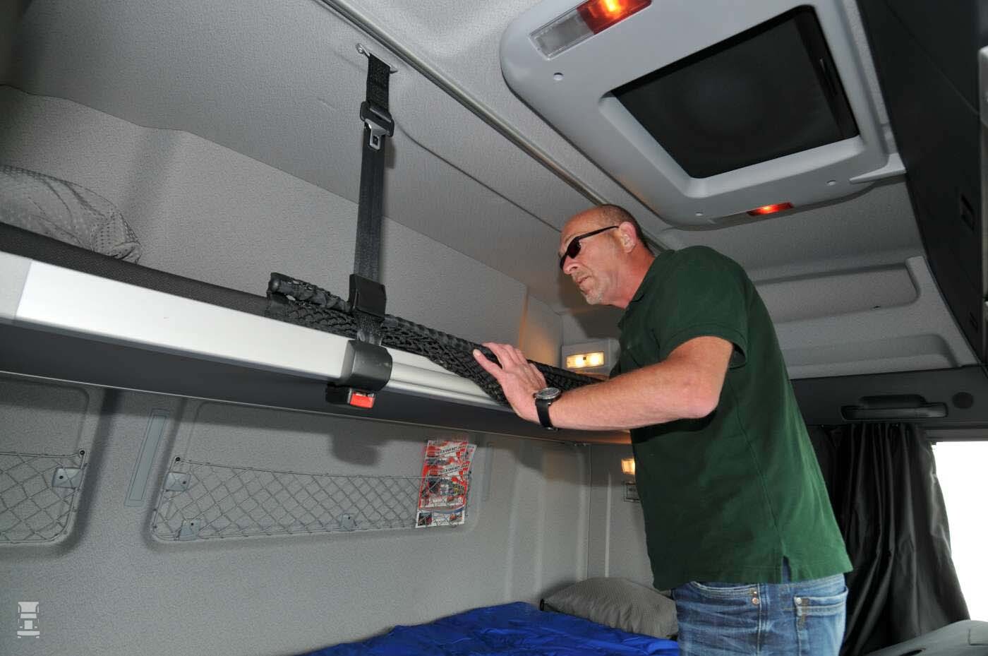 Toch blijft de vraag waarom iedereen altijd beneden wil slapen. Boven kun je namelijk gewoon een veel breder bed kwijt, en bovendien hoef je dan niet altijd met die stoelen te schuiven. Bij een merk als DAF is er een keurig laddertje gemonteerd, waardoor je probleemloos naar het bovenbed kunt klimmen. Wij zijn benieuwd of er chauffeurs zijn die altijd boven slapen!