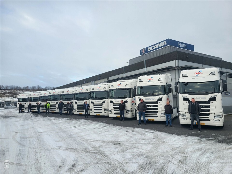 De nieuwe vrachtwagens vallen alle tien in Vecto-categorie 3, wat gunstig uitpakt bij de vrachtwagenheffing. Het familiebedrijf De Vries Transport is een trouw klant bij Scania. Het wagenpark bestaat uit zo’n 55 vrachtwagens. Daarnaast rijden er nog flink wat charters voor het bedrijf. De Vries Transport is opgericht in 1999 maar transport zit al sinds de jaren ‘30 in de familie.