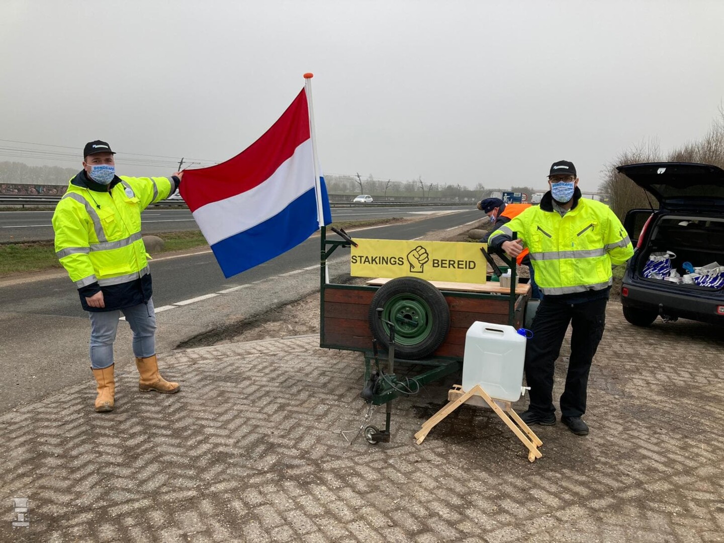 Vrijwilligers van de groep Stakingsbereid staan op parkeerplaats Veenbult aan de A15 soep uit te delen aan chauffeurs. Hiermee willen de actievoerders aandacht vragen voor een betere CAO, zeker nu TLN de werknemers letterlijk in de kou laat staan. Nu maar hopen dat de onderhandelingen niet in de soep lopen.