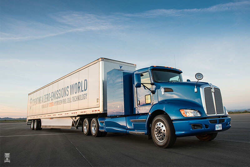 Toyota gebruikt voorlopig even een chassis en cabine van Peterbilt. Hun eigen truckmerk, Hino, bouwt geen trucks in de klasse waar Toyota nu in experimenteert. Let ook even op het straaljagergeluid van de nieuwe Toyota. Heel wat anders dan het geklapper wat wij nog af en toe horen.