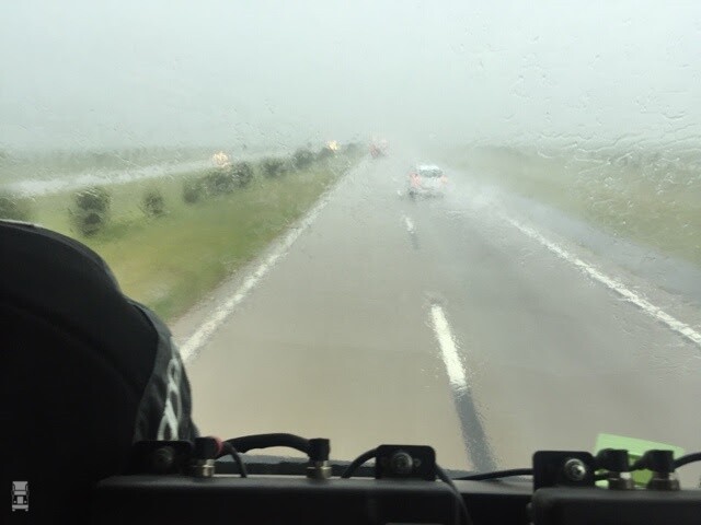 Op deze foto van Anton van Limpt, de navigator van Ton van Genugten, valt te zien hoe de omstandigheden gewoon op de weg waren. De paden waar de rally over had gemoeten zijn nu natuurlijk één grote modderpoel. Omdat de voertuigen voor woestijnraces gebouwd zijn, kampen diverse deelnemers nogal met wateroverlast in de voertuigen zelf. Gelukkig kan een rol duct tape in zo'n geval wonderen doen. Ook voor de komende dagen ziet het er slecht uit, 'El Nino' heeft volgens de Argentijnse neef van Piet Paulusma nog veel meer water in petto.