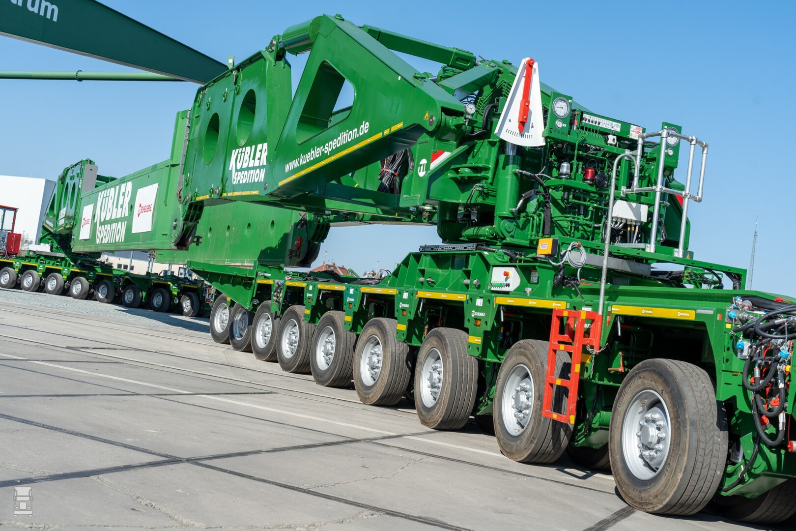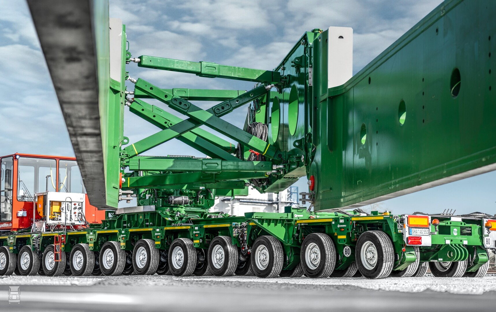 De set is wat ze in Engeland een 'Girder Bridge' noemen. Dat wil zeggen een set waarbij op een platformwagen met negen aslijnen met pendelassen een grote draagbrug staat waar de transformator in komt te hangen. Aan de achterkant draagt die brug op nog zo'n platformwagen, maar dan met 12 aslijnen met pendelassen. Op die achterste module staat ook een cabine waar een tweede chauffeur zorgt voor de besturing en de bediening van de hydrauliek.