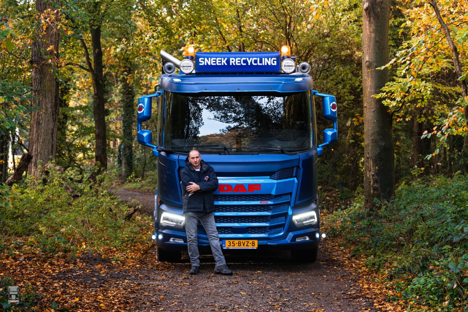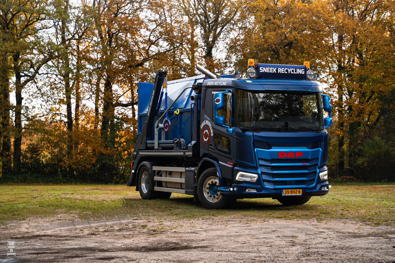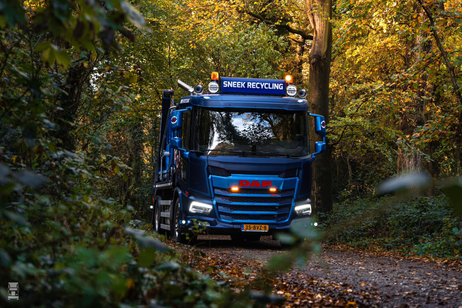 De DAF XD is voorzien van een stoere lichtbak met verstralers en zwaailampen en staat op glanzende Alcoa's. Verder staat er een set lange luchthoorns op het dak en is er gekozen voor een staande uitlaat. Dankzij het Kerb Vision Window heeft de chauffeur optimaal, direct zicht op de dode hoek. Alles bij elkaar een bijzonder fraaie en functionele DAF XD. De truck werd geleverd door DAF Trucks dealer Bedrijfswagen Service Friesland.