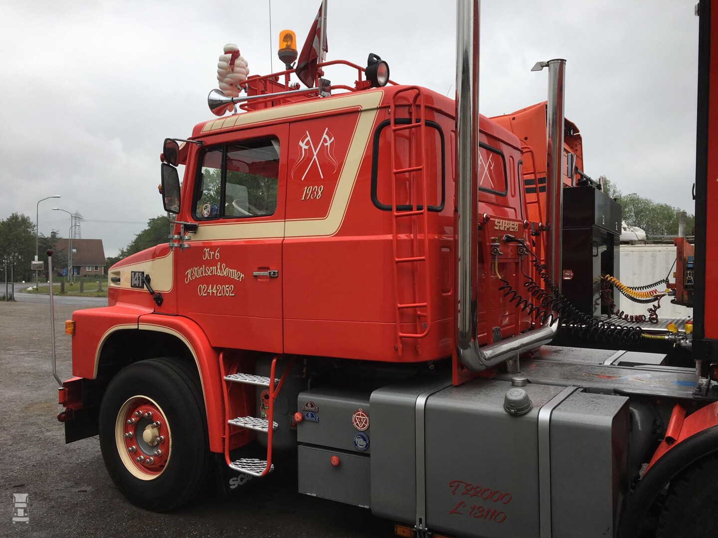 Deze schitterende Deense Scania 141 is één van de 55 Scania's 141 die te zien is op een speciaal thema evenement in Reeuwijk. De truck kwam via Nieuweschans ons land binnen en werd bij Remmers even stevig gepoetst voor de show. Booye Huizinga maakte deze exclusieve foto's van deze beauty.