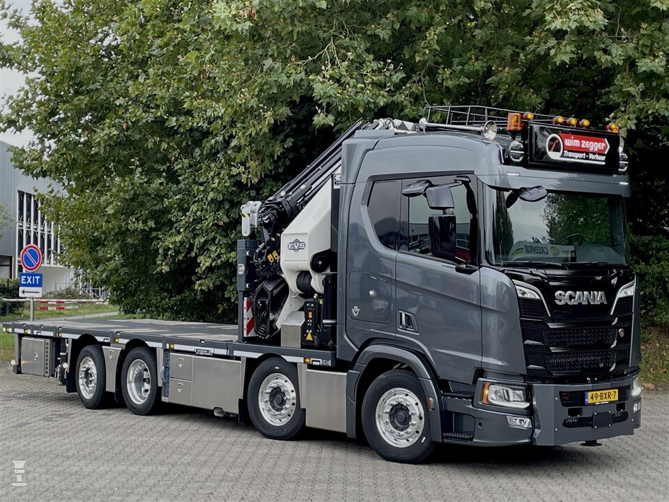 De nieuwe Scania van het bedrijf is gespoten in de grijze huisstijl van het bedrijf. Een lichtbak, luchthoorns, rekje en extra verlichting op het dak maken de Scania extra stoer. De vrachtwagen is voorzien van extra werkverlichting, uiteraard uitgevoerd in LED. In de cabine geniet de chauffeur van standverwarming en -airco.