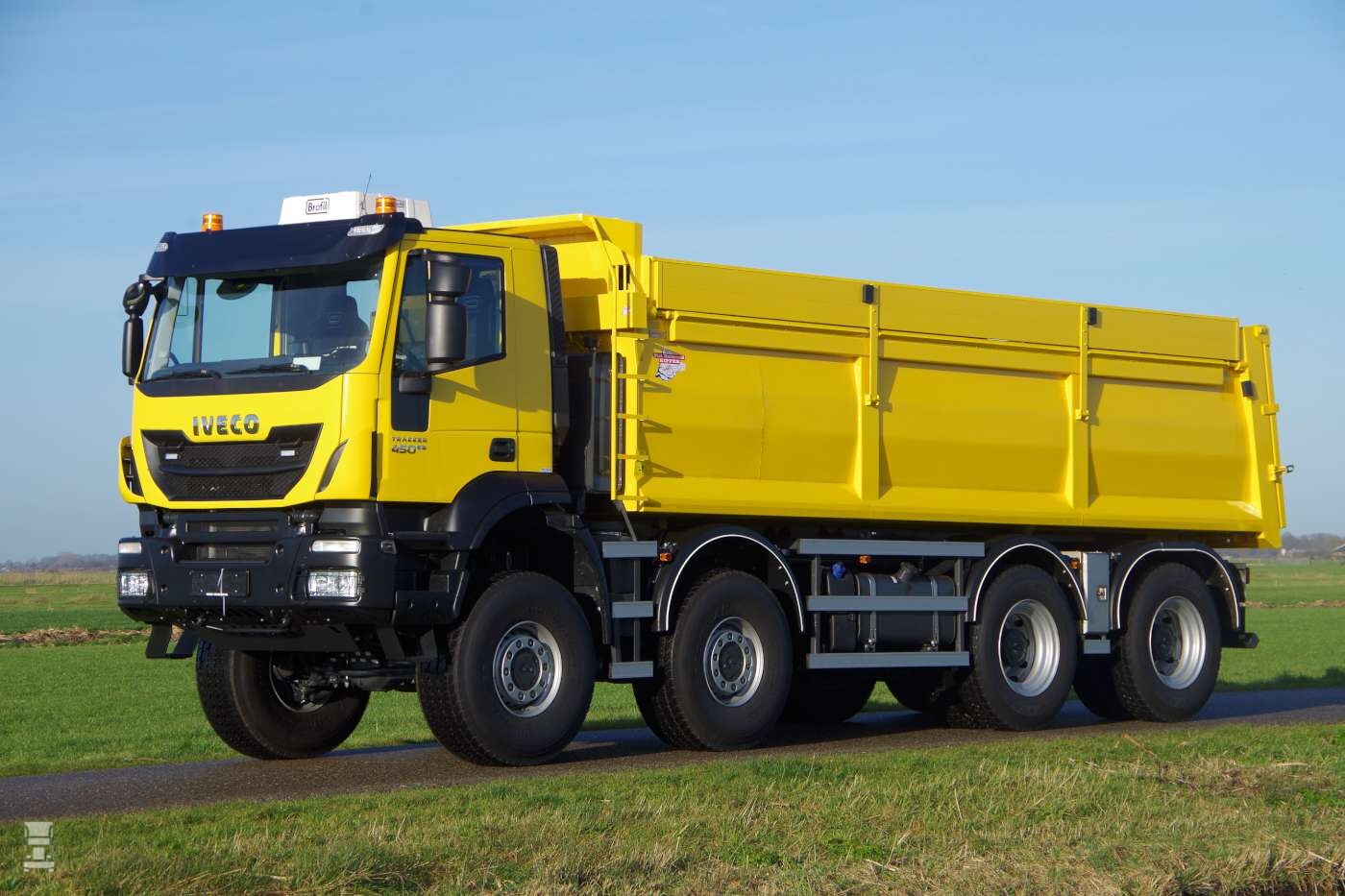 Deze stoere Iveco Trakker 8x8 is voor VoTra Zand en Grindhandel in Den Bommel. De indrukwekkende Iveco is uitgerust met de 450 pk motor en een Ruizeveld kipperopbouw. Met een overdruk unit en de extra hoge wielen is deze kipper geschikt voor het zwaarste werk in de zandbanen.