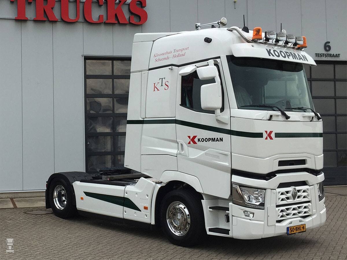 Nadat we eerst gewend zijn aan de nieuwe Renault T serie zien we nu ook steeds vaker het hoge model op de weg. Hier zie je de nieuwe High-T 520 trekker van Kloosterhuis transport uit Scheemda.