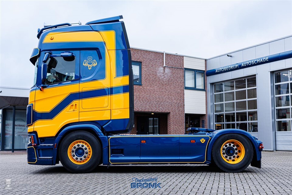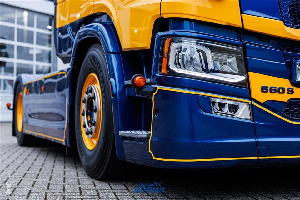 De blauwgele combinaties van Gebr. Van Iterson zijn een lust voor het oog. Dat waren ze al in 1997, zoals je in ons magazine kunt lezen. Maar ook anno 2024 behoren de trucks van dit bedrijf tot de top, zo bewijst de Scania 660S van Leendert Eijkenboom. Vorige maand kreeg hij de sleutels van zijn nieuwe trekker, nadat hij door Truckspuiterij Bronk in zijn fraaie kleed gespoten was.