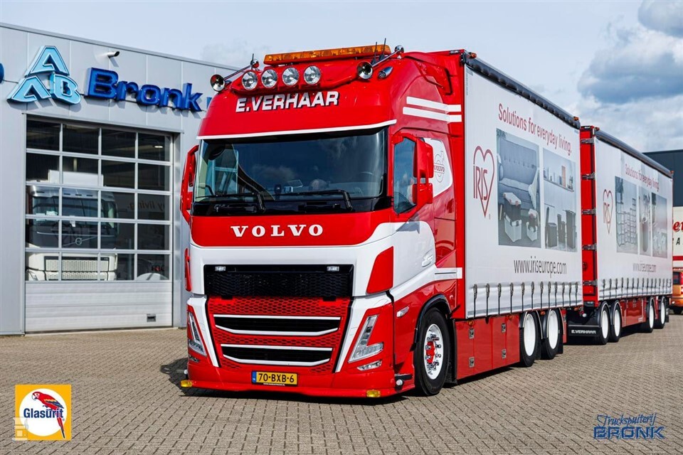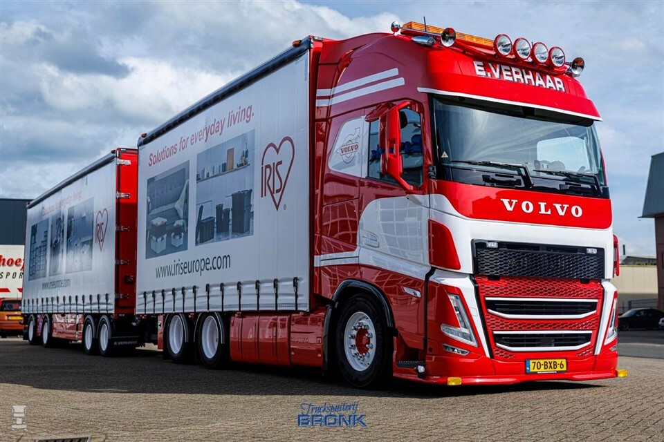Verantwoordelijk voor het fraaie spuitwerk is Truckspuiterij Bronk, onderdeel van Barbatruck. Men is erg trots op het resultaat. En terecht, want de Volvo FH is om door een ringetje te halen. De combinatie wordt voornamelijk ingezet voor volumetransporten in de Benelux met allerlei opbergproducten en meubelen.