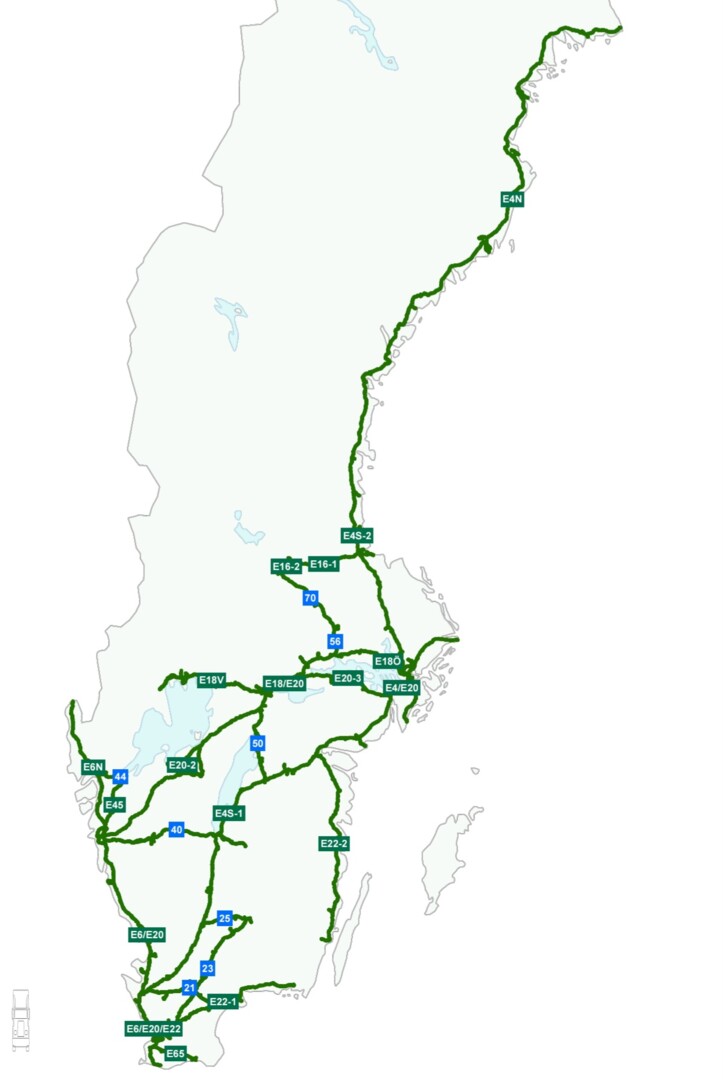 Naast de aangewezen routes zijn er vergunningen afgegeven door 160 Zweedse gemeentes waardoor ook over lokale wegen gereden kan worden naar de laad- en loslocaties. De hoofdwegen kun je zien in bijgaand kaartje.