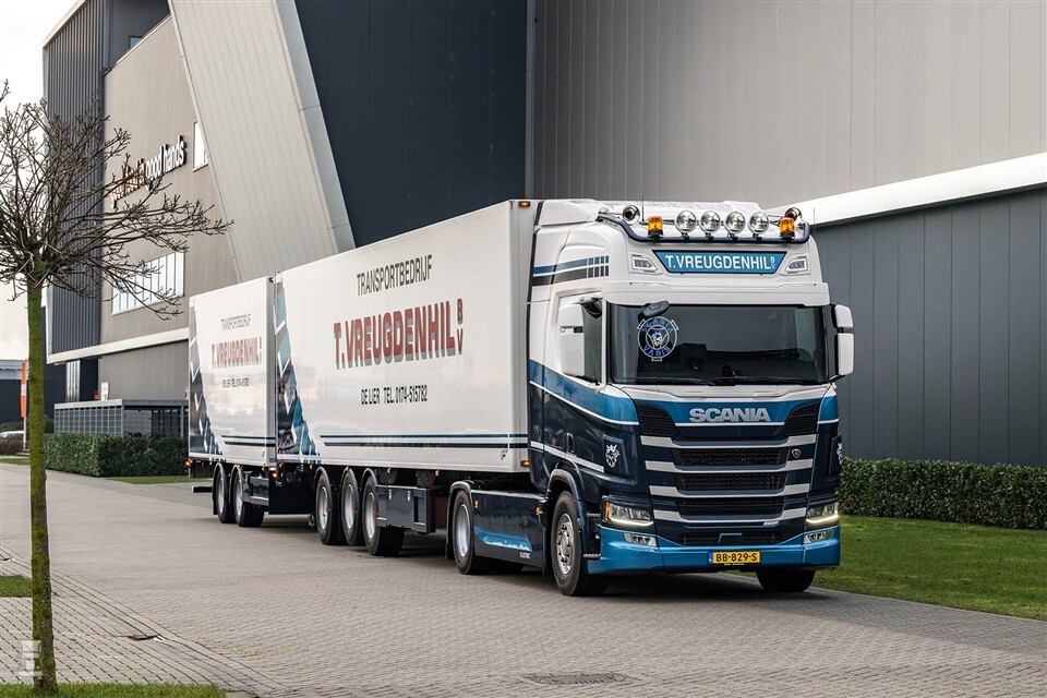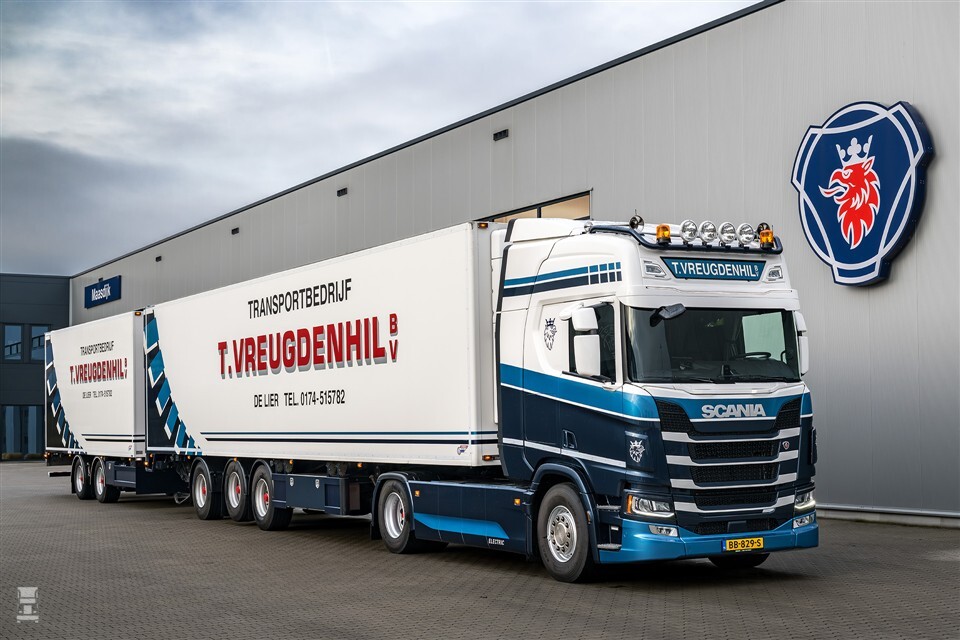 “Onlangs werd de nieuwe Scania 40R naar de kop van Noord-Holland ingezet als LZV met een totaalgewicht van 57 ton. Waar de chauffeur met een moderne diesel LZV nog met 60 km/u uit de Coentunnel naar boven kwam, haalt hij nu moeiteloos 80 km/u. Dat laat zien wat elektrisch vermogen kan betekenen,” zegt Dennis Looije, verantwoordelijk voor de operationele zaken bij transportbedrijf T. Vreugdenhil uit De Lier.