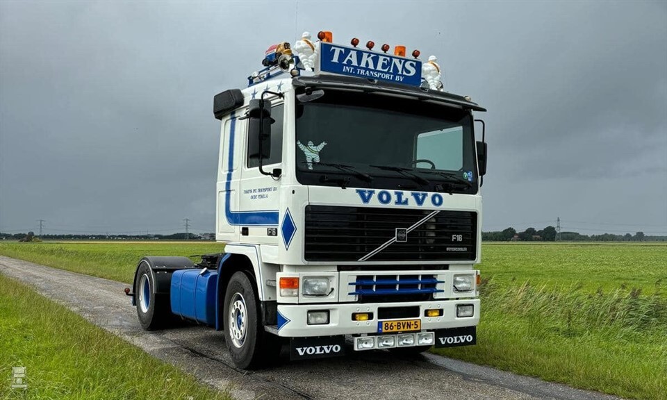 De uit 1993 stammende trekker is vorig jaar in Nederland op kenteken gekomen. Vervolgens is hij door Takens helemaal onder handen genomen, met een fraai gerestaureerde old-skool trekker tot gevolg. De Volvo met de 16-liter dieselmotor is weer het paradepaardje van Volvo dat het ooit was. Zeker met de opbouw, die helemaal klopt met de tijd, is het een plaatje geworden.